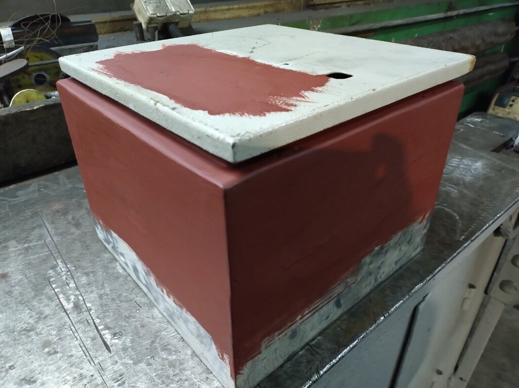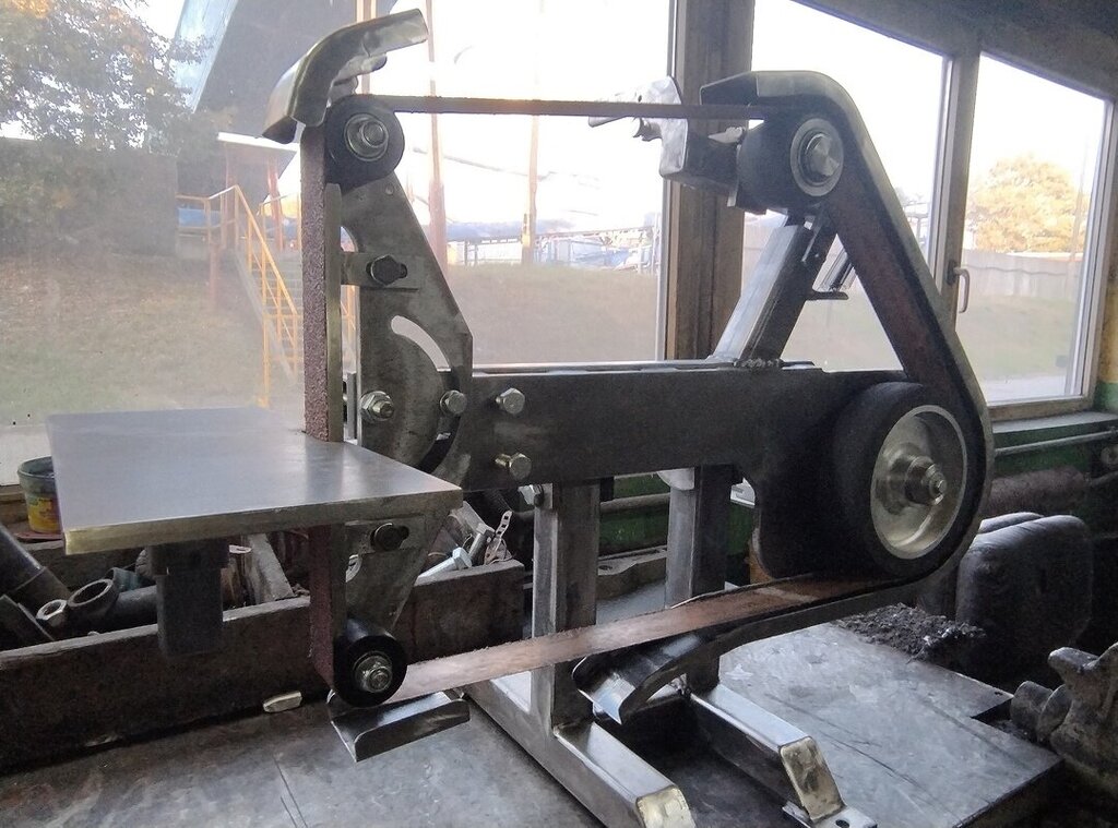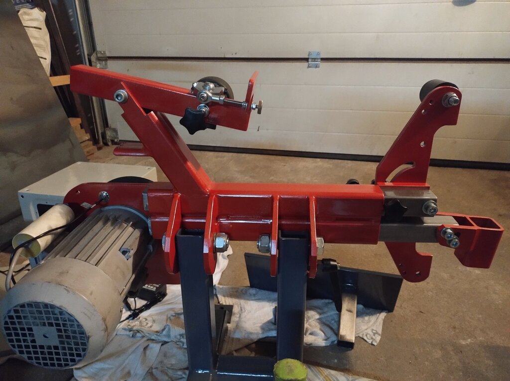 Jakoś nie mogłem się powstrzymać. Dlatego - szlifowanie, odtłuszczanie i pierwsze malowanie konstrukcji szlifierki farbą podkładową i następnie akrylową (RAL7016).