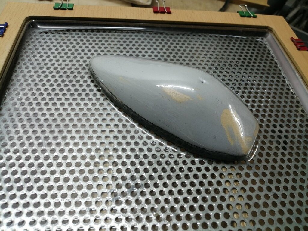 Ten plastik to HIPS. Płyty są różnej grubości. Elementy na zdjęciach wykonane są z płyt 1mm. Co do temp, to nigdy jej nie mierzyłem. W necie jest sporo informacji na ten temat. Ja swoje płytki zamocowane w ramkach nagrzewam nad taką starą, jeszcze z lat 80-tych przenośną kuchenką z płytą elektryczną służącą mi wyłącznie do tego celu. Płyta w ramce pod wpływem temperatury staje się coraz bardziej plastyczna, co przejawia się takim workowatym zwisem od dołu. I właśnie ten zwis i plastyczność płyty jest dla mnie wskaźnikiem odpowiedniego momentu do formowania. Fakt, że na początku wymaga to trochę eksperymentów. Dalej to już tylko odkurzacz podłączony do skrzynki próżniowej i mamy to co nam z tego wyjdzie. Przy tej metodzie dość ważne są odpowiednie dystanse kopyta elementu od powierzchni płyty skrzynki próżniowej?.