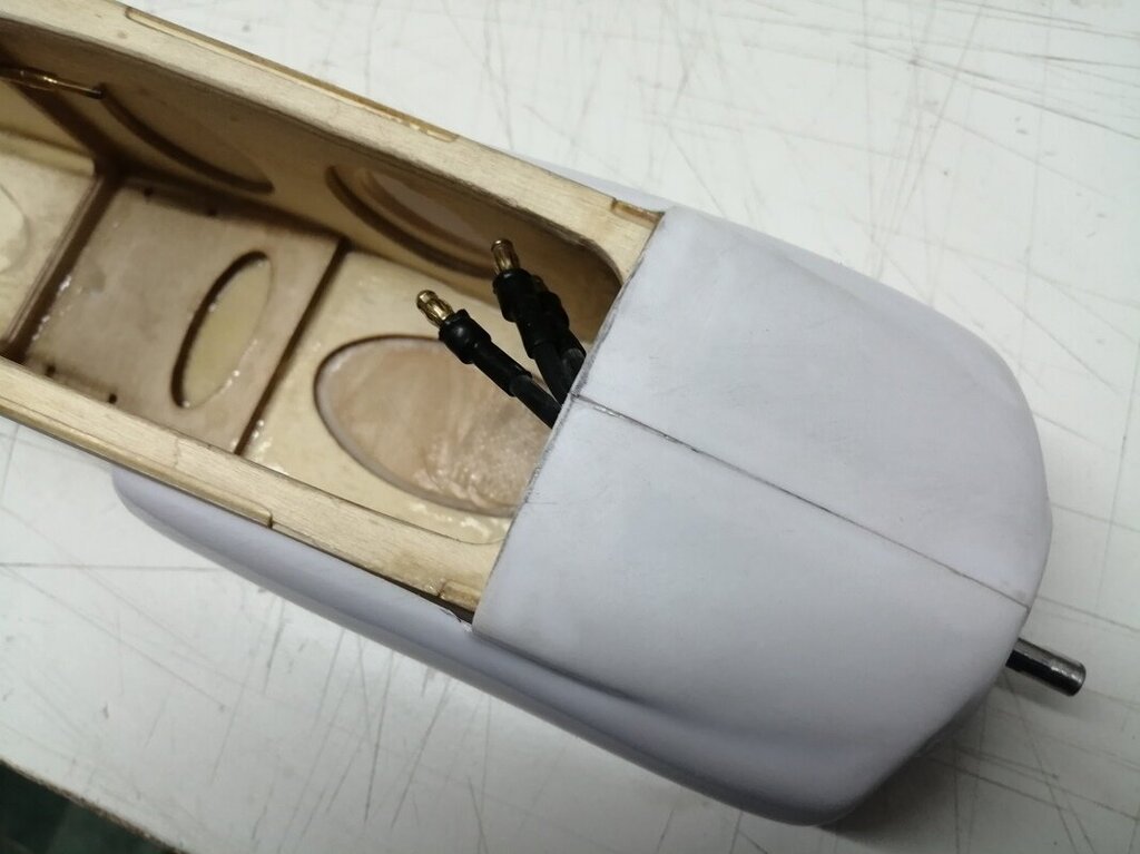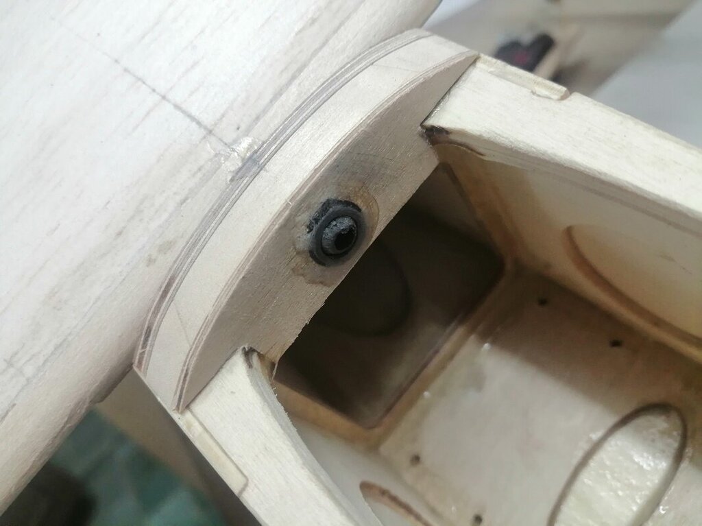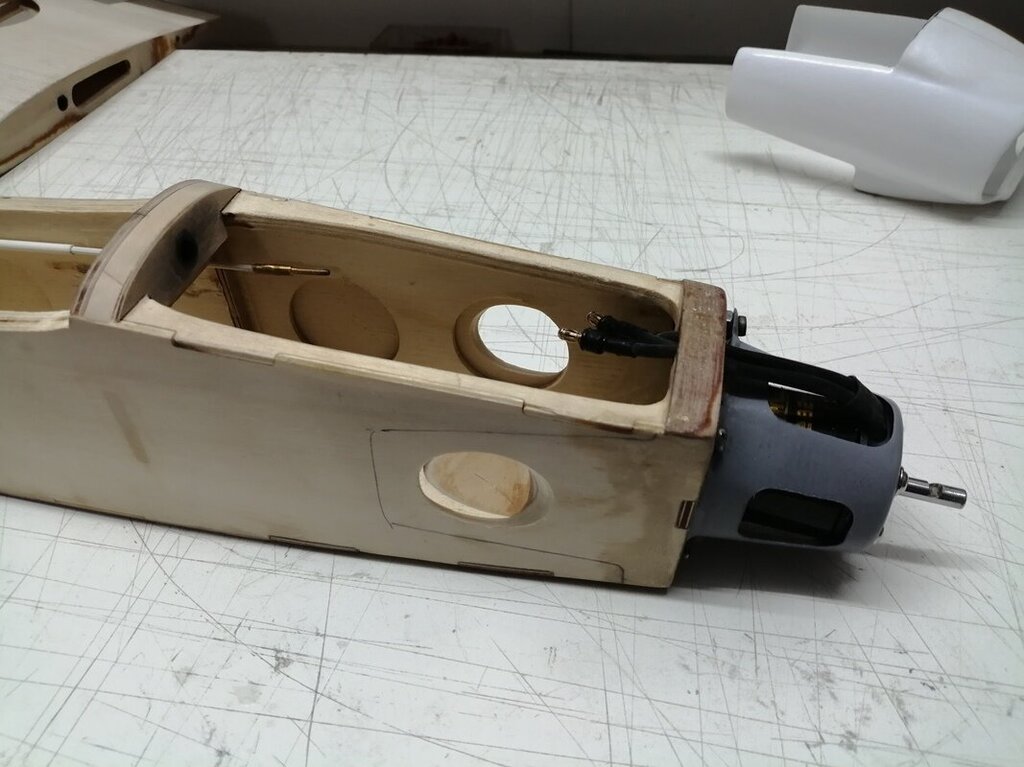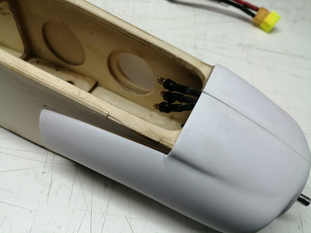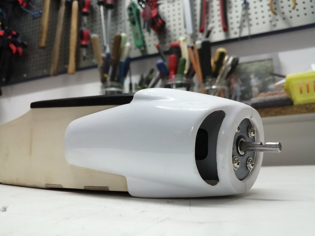 Tak. Dlatego właśnie zdecydowałem się na ten nietypowy domek silnika. Mocowanie silnika do pierwszej wręgi eliminowało właśnie składane śmigło. Po prostu kwadratura przodu kadłuba uniemożliwiała odpowiednie składanie się śmigła. Przy obecnym mocowaniu i przy tej masce jest ok. Pomysł ze śmigłem składanym powstał już w trakcie budowy - dlatego trzeba było przód kadłuba lekko zmodyfikować. Jednocześnie tak, jak już wspomniałem powyżej maska ma również spełniać rolę chwytów powietrza do chłodzenia elektroniki i akumulatora wewnątrz kadłuba.