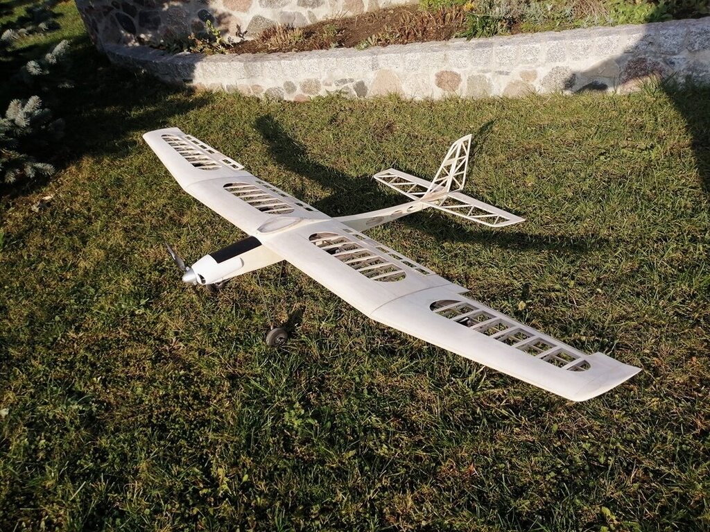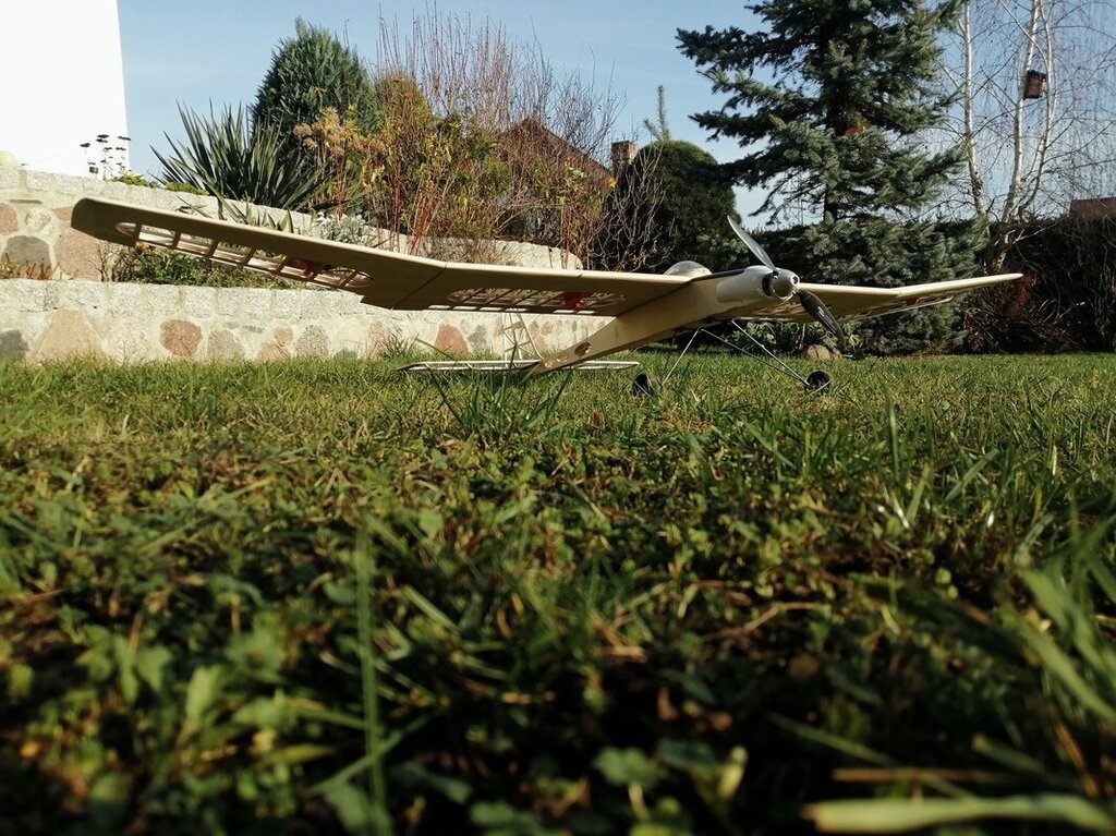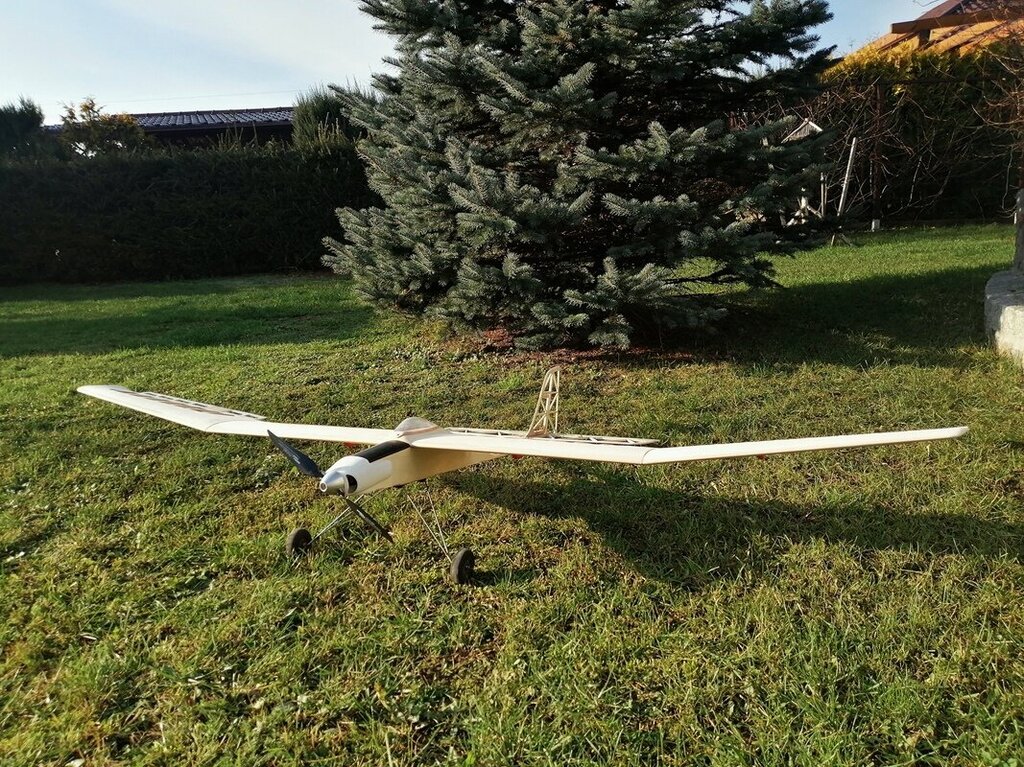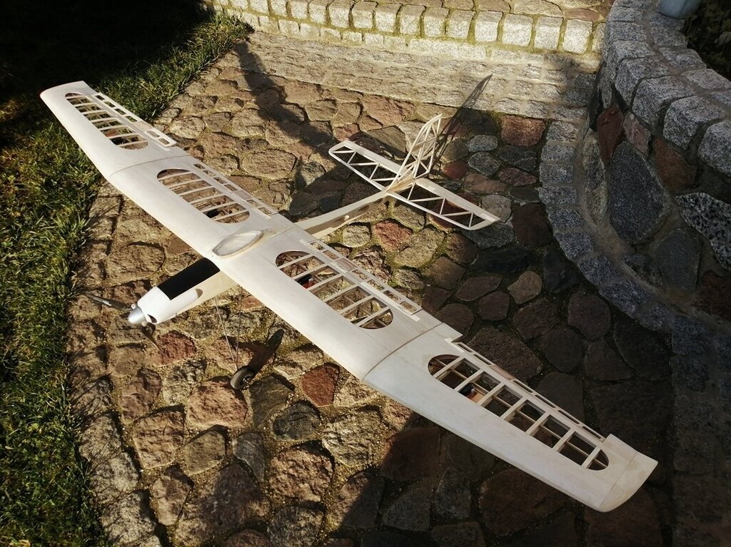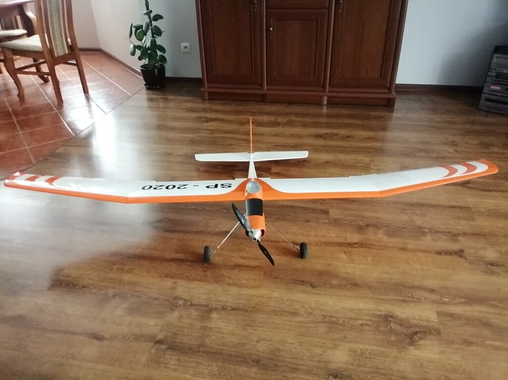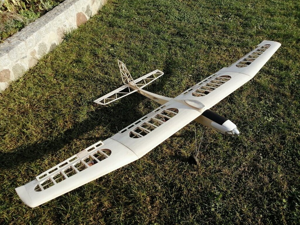 To co widać plus całe wyposażenie wychodzi 2100g. dojdą jeszcze jakeś cięgna klap i lotek, dźwignie, snapy, folia. Do lotów motoszybowcowych mam zamiar zdejmować podwozie, lub wykonać inne, lżejsze - tak, jak pisałem wcześniej z jednym kołem, co powinno zdjąć nieco wagi. To obecne samolotowe waży ok 100g. Powierzchnię nośną ma 50dm2.