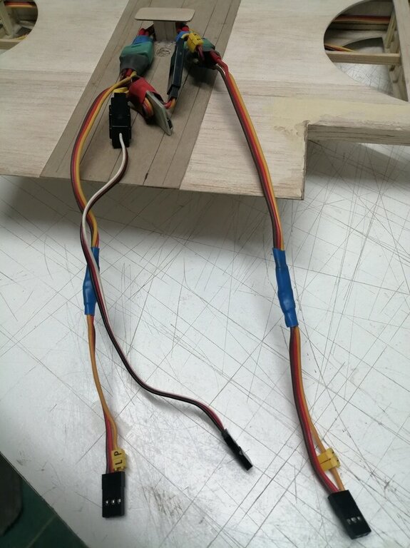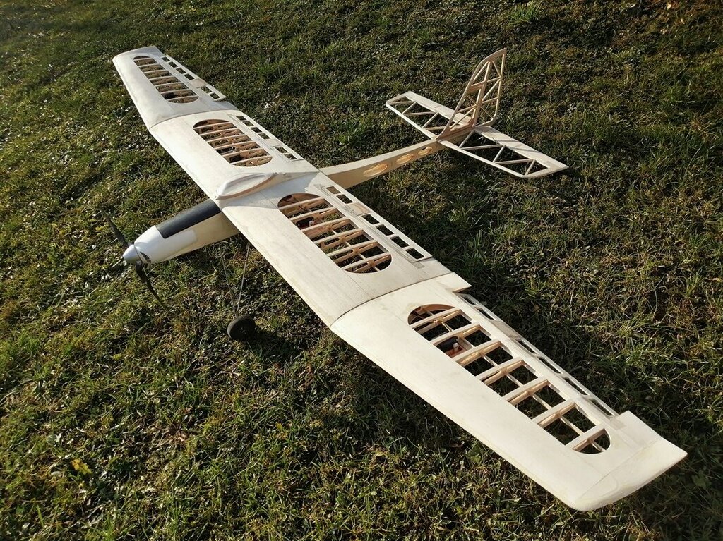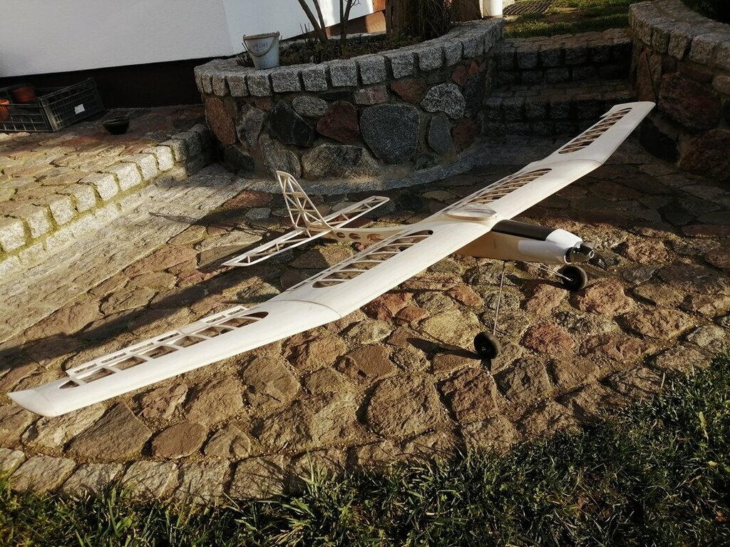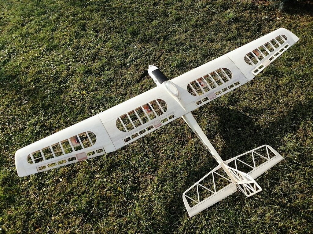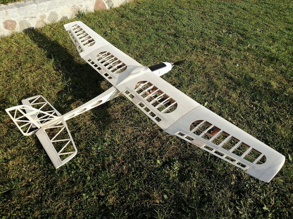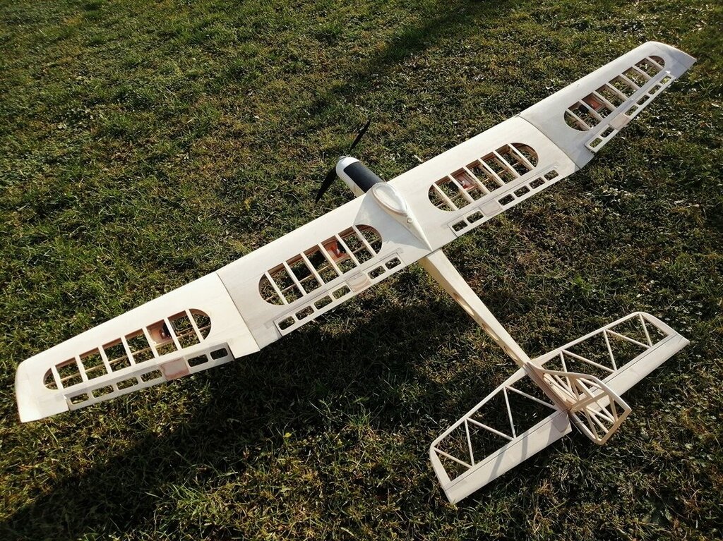 To co widać plus całe wyposażenie wychodzi 2100g. dojdą jeszcze jakeś cięgna klap i lotek, dźwignie, snapy, folia. Do lotów motoszybowcowych mam zamiar zdejmować podwozie, lub wykonać inne, lżejsze - tak, jak pisałem wcześniej z jednym kołem, co powinno zdjąć nieco wagi. To obecne samolotowe waży ok 100g. Powierzchnię nośną ma 50dm2.