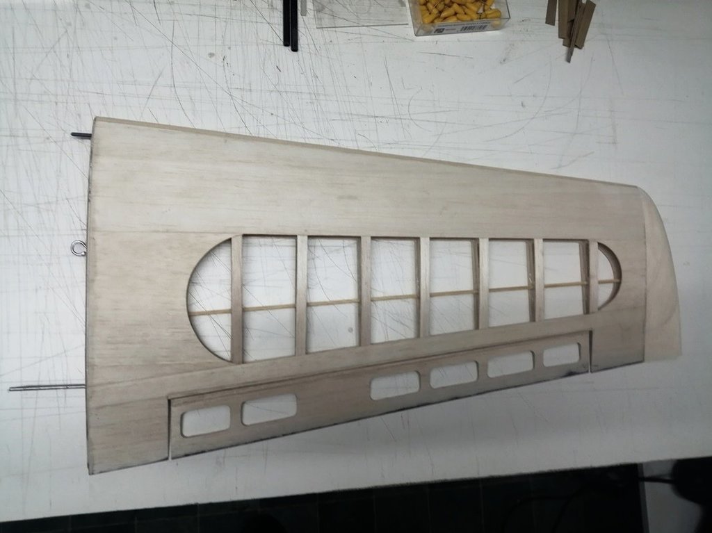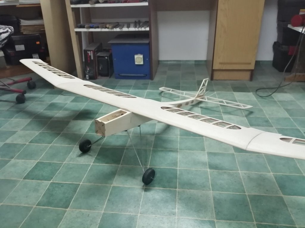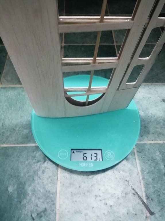 Ciąg dalszy prac. Uszy Szybolota otrzymały kompletne poszycie. Całość wstępnie przeszlifowana i wklejone lipowe listwy w krawędziach natarcia oraz balsowe listwy w mocowaniach lotek. Skrzydło wstępnie zważone - 613g jeszcze bez wklejonych listew. Po odcięciu i przeszlifowaniu lotki również otrzymały krawędzie natarcia (listwy balsowe). Waga całości w stanie jak na zdjęciach - kadłub z usterzeniem poziomym i pionowym - 316g + skrzydło -613g = 929g. Myślę, że waga samego wykończonego modelu powinna się zamknąć w granicach do 1200g + waga wyposażenia ok. 500g = całość ok. 1700g, co ostatecznie daje obciążenie powierzchni ok. 29 - 30g/dm2.