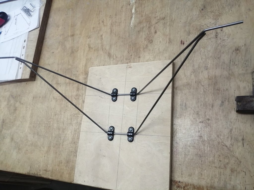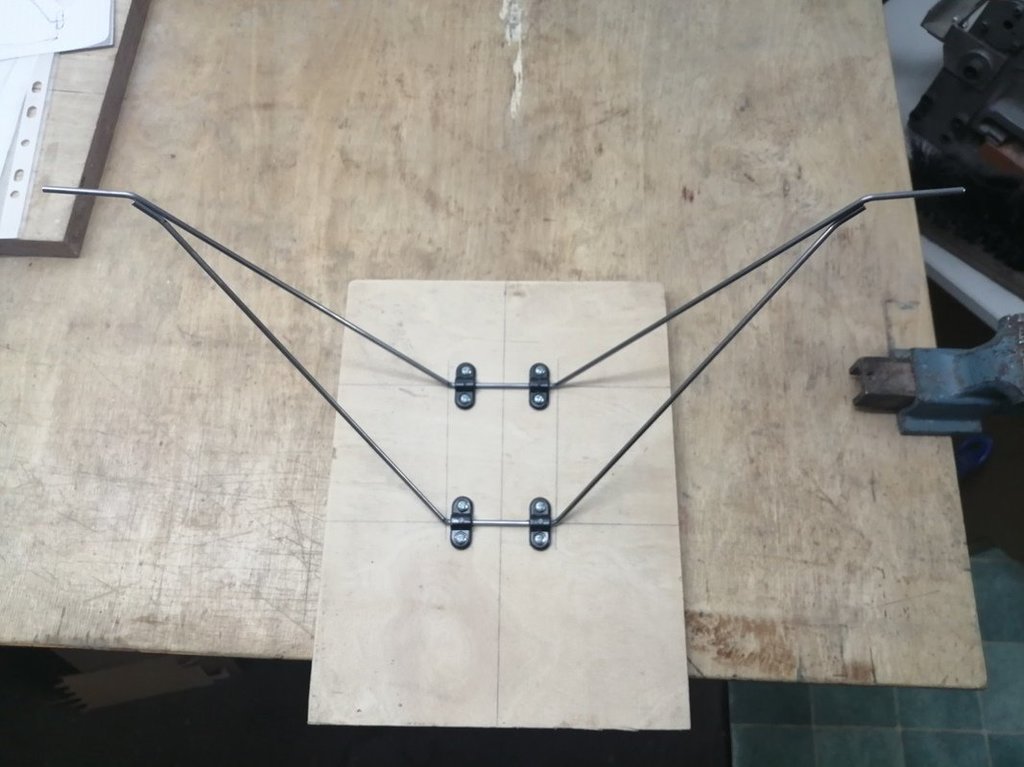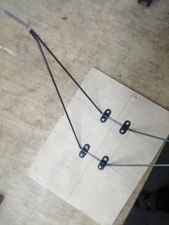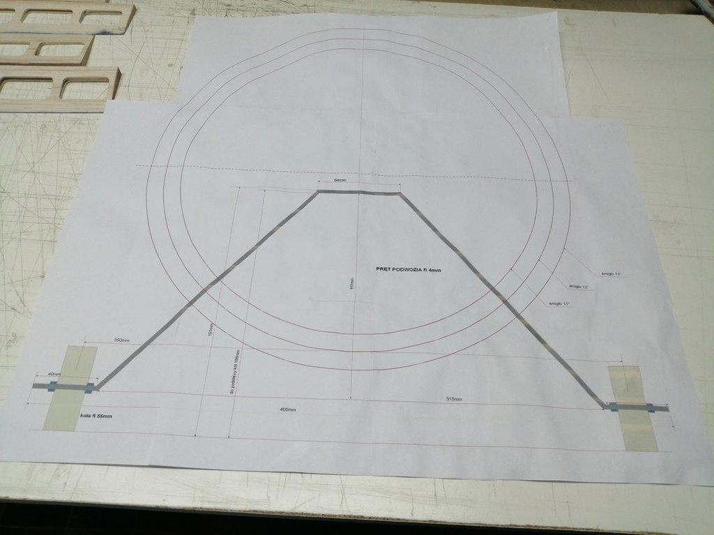 Postępy prac może nie za duże, ale zawsze to coś do przodu. Pierwsze przymiarki elementów podwozia do lutowania - pręty stalowe fi 3mm.