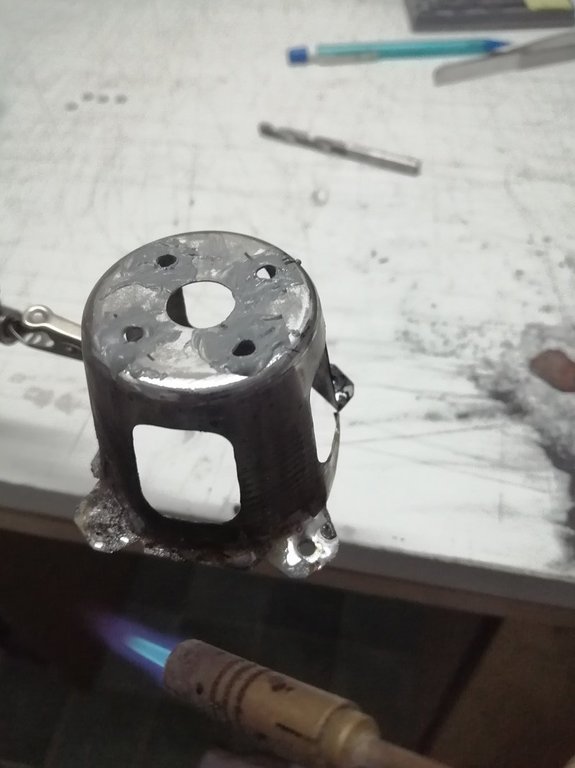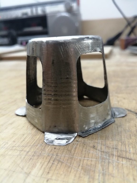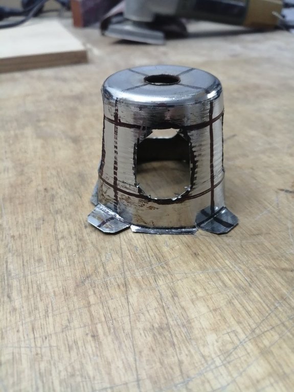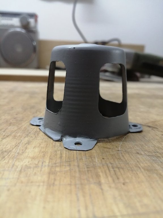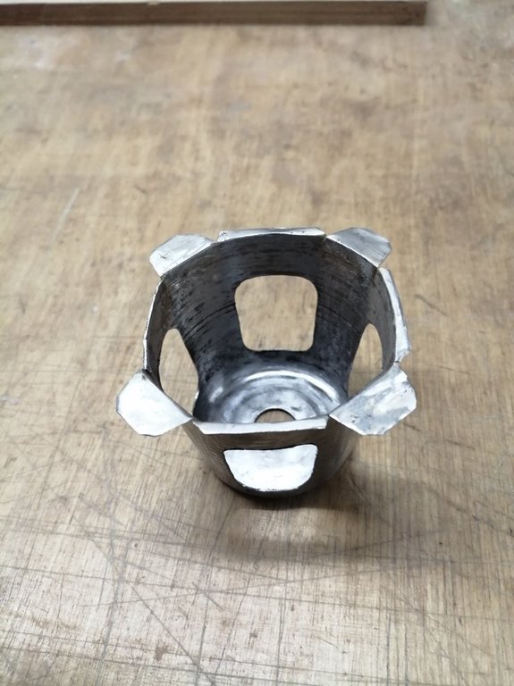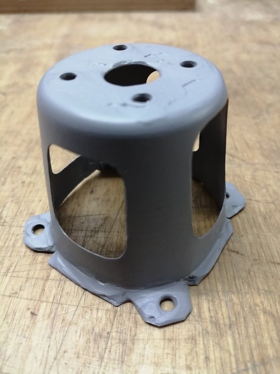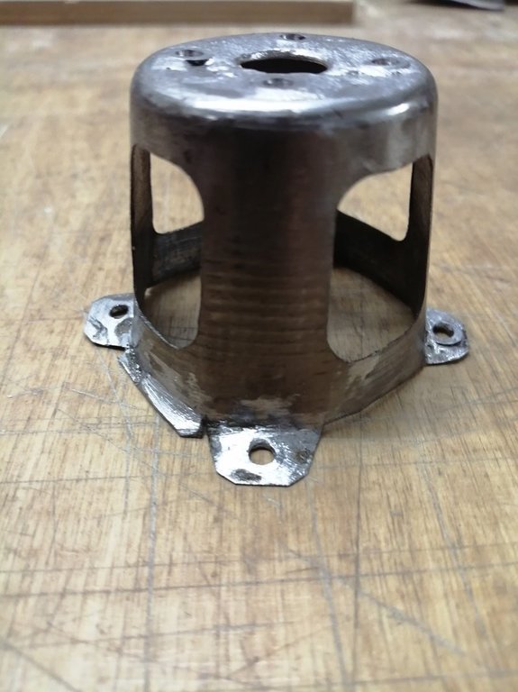 Dzisiaj SZYBOLOT otrzymał domek silnika. Domek miałem wytoczyć z poliamidu, ale wczoraj będąc przypadkowo w skupie złomu wpadł mi w oko pewien metalowy przedmiot ,,ala kubek,, z otworem. No i po przeróbkach z ,,kubka,, powstał domek silnika. Prezentuje się tak: