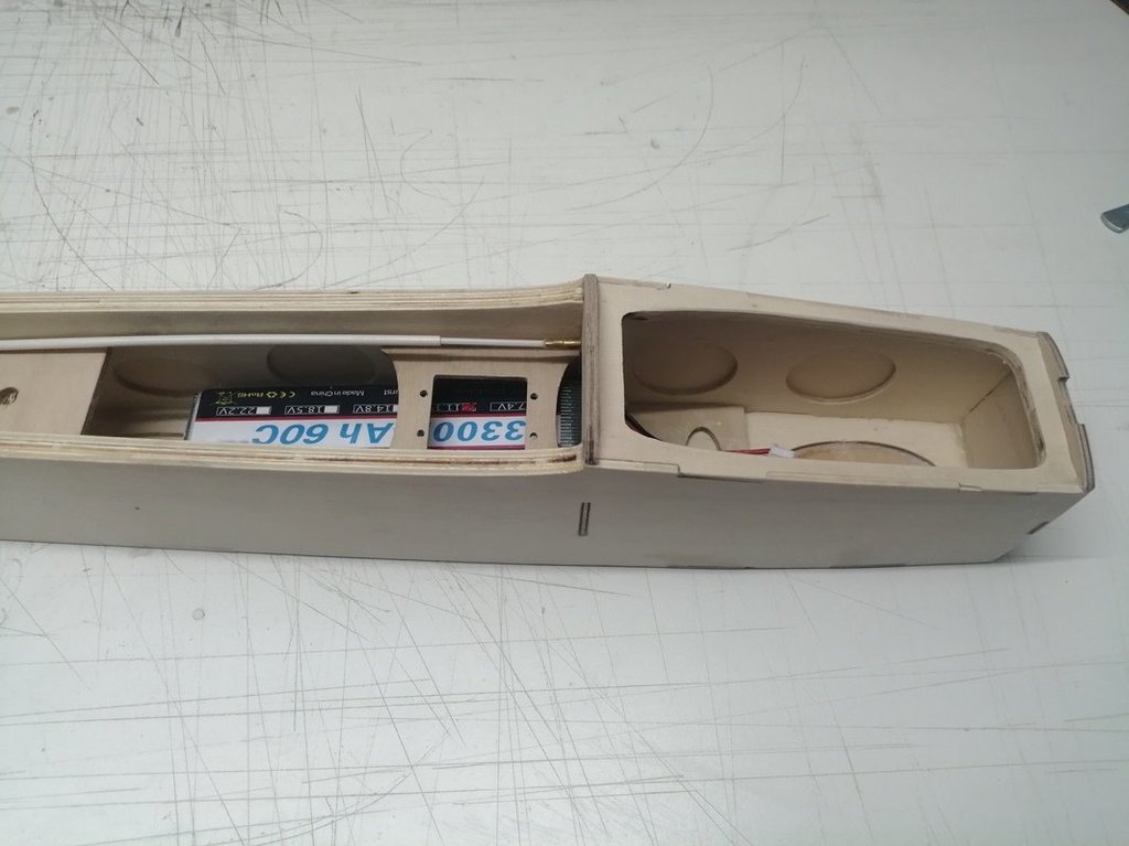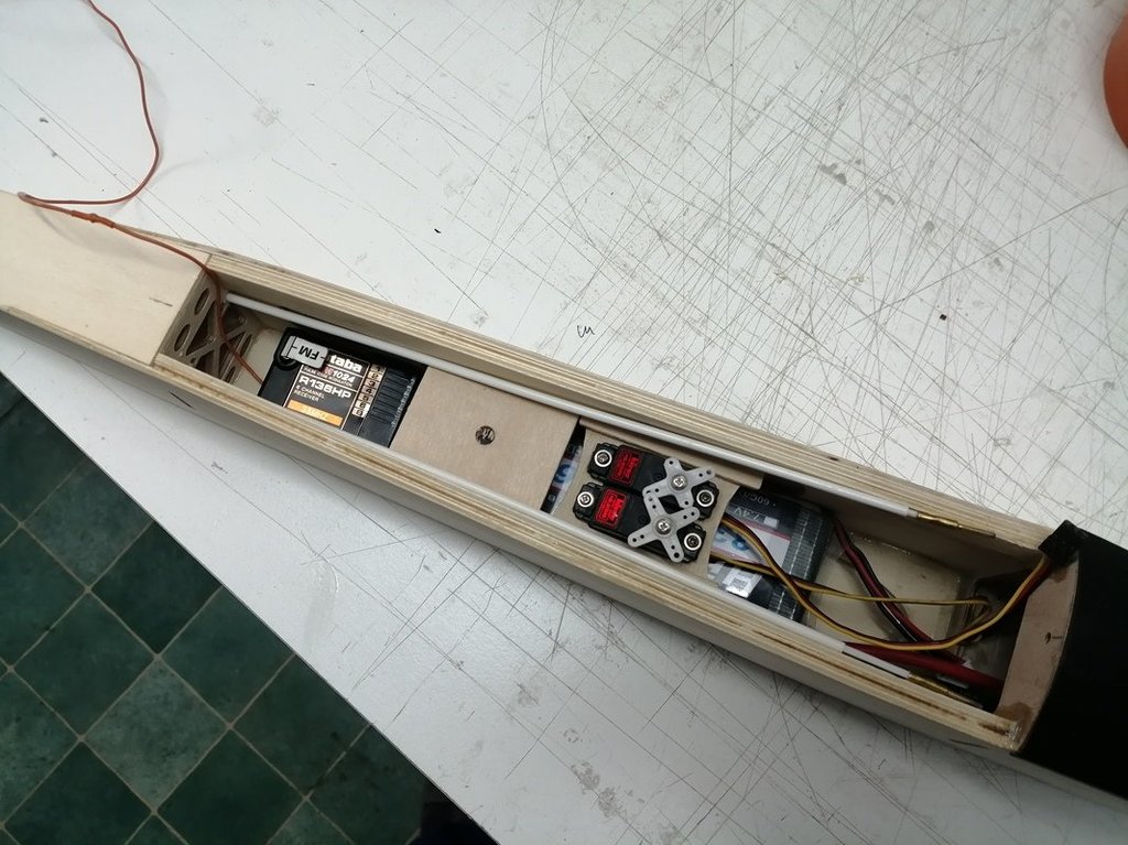 Słuszna uwaga. Sam też tak myślałem. Model jest przerabiany z planów w wersji z napędem spalinowym i stąd serwa w tym miejscu - przyznam że nie wszystko właściwie przemyślałem?. Wczoraj tylko tak z ciekawości włożyłem akumulator. Serwa prawdopodobnie przesunę do tyłu. Myślałem, aby akumulator wymieniać przez przednią część kadłuba bez demontażu skrzydła i chociaż byłoby to możliwe, to jednocześnie trochę niewygodne. Oczywiście ostateczne położenie aku ustalone zostanie po oklejeniu, zmontowaniu całości i zamontowaniu całego osprzętu. Nie chciałbym w jakikolwiek sposób doważać modelu?.