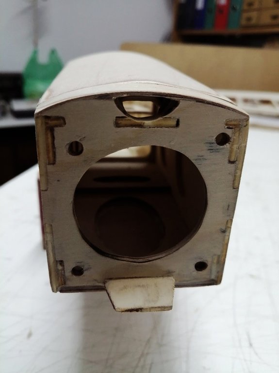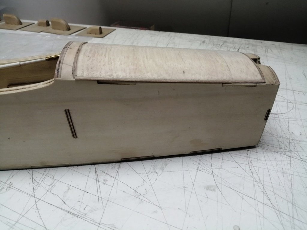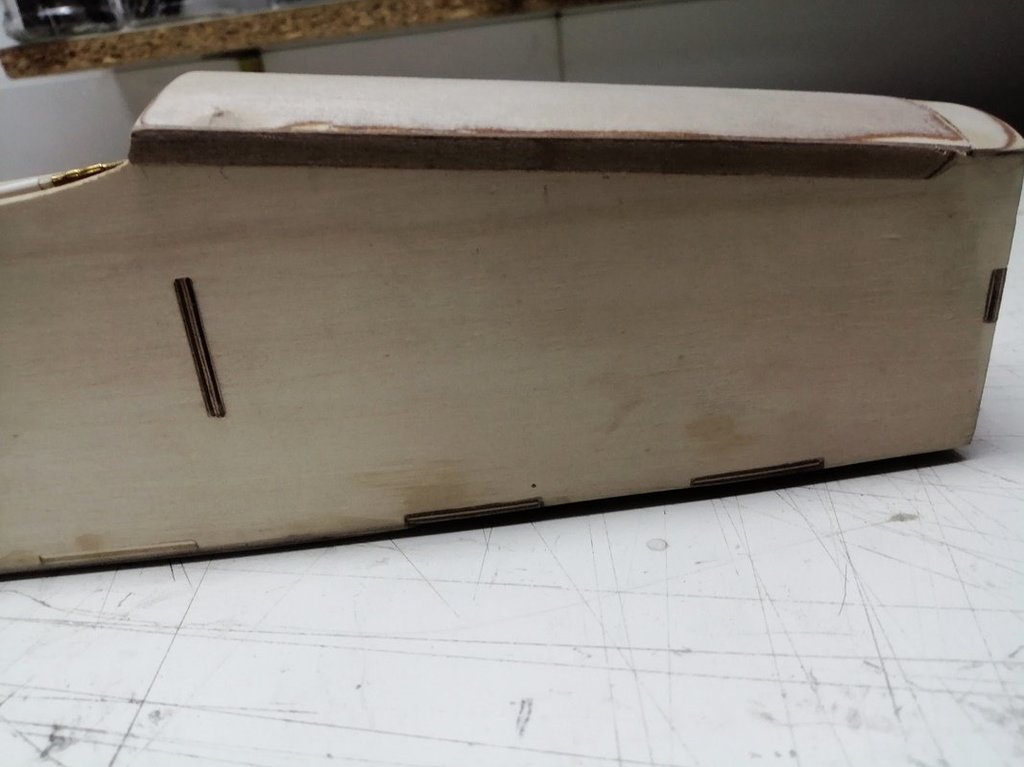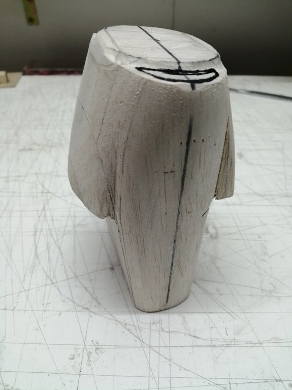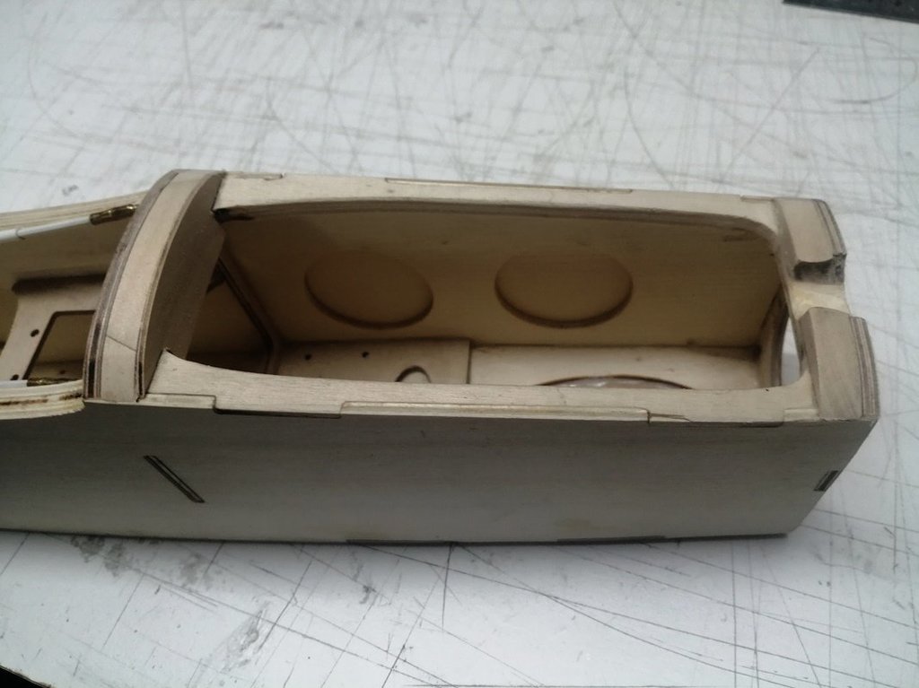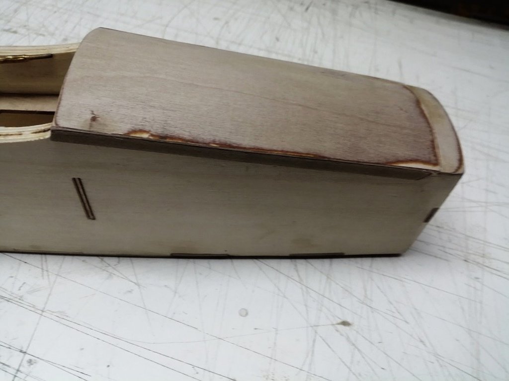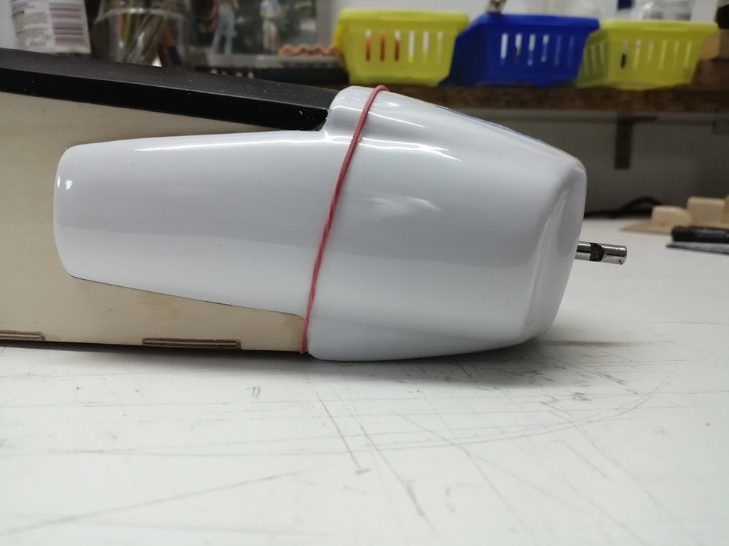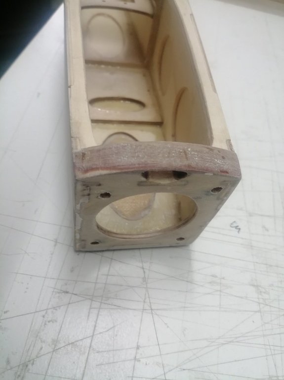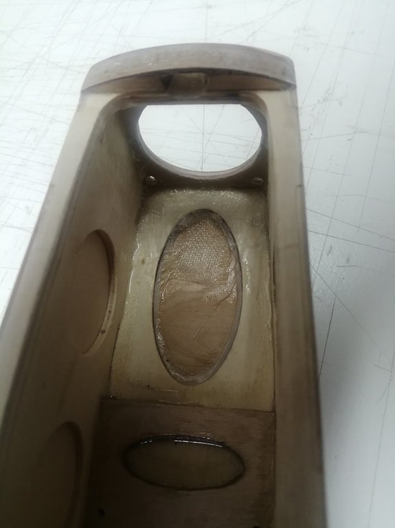 Witam po przerwie. No niestety z wolnym czasem bywa różnie, ale najważniejsze, że projekt jest dalej realizowany. Dzisiaj udało mi się wykonać z balsy i sklejki osłonę góry przodu kadłuba - będzie jeszcze zalaminowa tkaniną szklaną. Muszę jeszcze dorobić zapięcie. Pierwsze zdjęcie nawiązuje do poprzedniego wątku - do kopyt serw wykonałem otwory ssące do powietrza dla vacu.