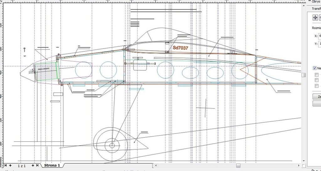 Wskazówki, które opisałeś są ok. Model ten nie jest moim pierwszym w tych rozmiarach. A projekt powoli posuwa się do przodu. Dzisiaj zważyłem komplet wyposażenia przeznaczonego do modelu - wyszło 734g. Dojdą jeszcze jakieś przedłużki kabli złącza drobne wykończenia i folia. Zakładana początkowo waga gotowego modelu zostanie na pewno przekroczona - myślę, że będzie to ok. 1900 - 2000g. Co da nam obciążenie powierzchni w granicach 38 - 40g/dm2. Do napędu klap, lotek, steru kierunku oraz steru wysokości zamierzam wykorzystać serwa HS-80MG z dawnych zapasów. Dzisiaj wykonałem też gniazda zaślepek serwomechanizmów klap. Same zaślepki zamierzam wytłoczyć metodą VACU. Na pierwszym zdjęciu jest oryginalny model z planów na podstawie którego robię swój nieco powiększony i z mechanizacją skrzydła - oczywiście z oryginału pozostał tylko obrys modelu a cała konstrukcja została zmieniona. A tak to wygląda: r
