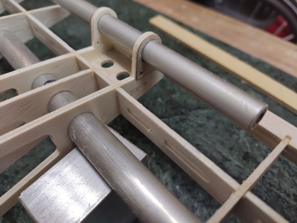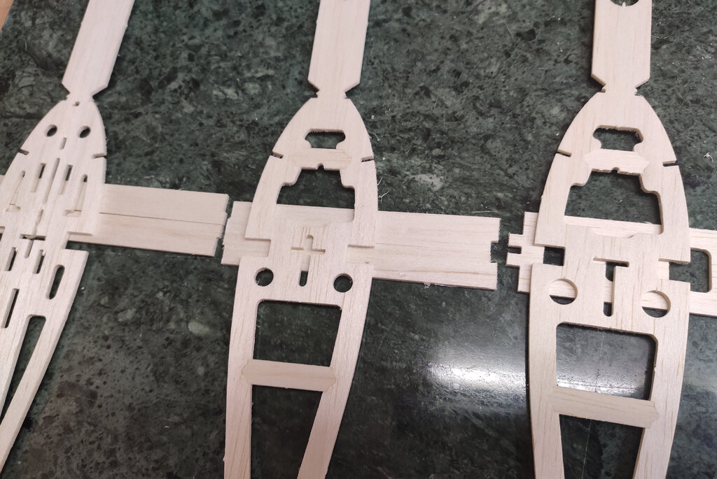 Wiesław, ten domek też trzeba było sklejać z włożonymi na sucho pozostałymi elementami kadłuba. Pisałem o tym. Taki sposób wyklucza ewentualne zwichrowane. To wzmocnienie na rury mam narysowane. Ale że ja preferuje puszki to zapomniałem umieścić na formatkach. Hej -