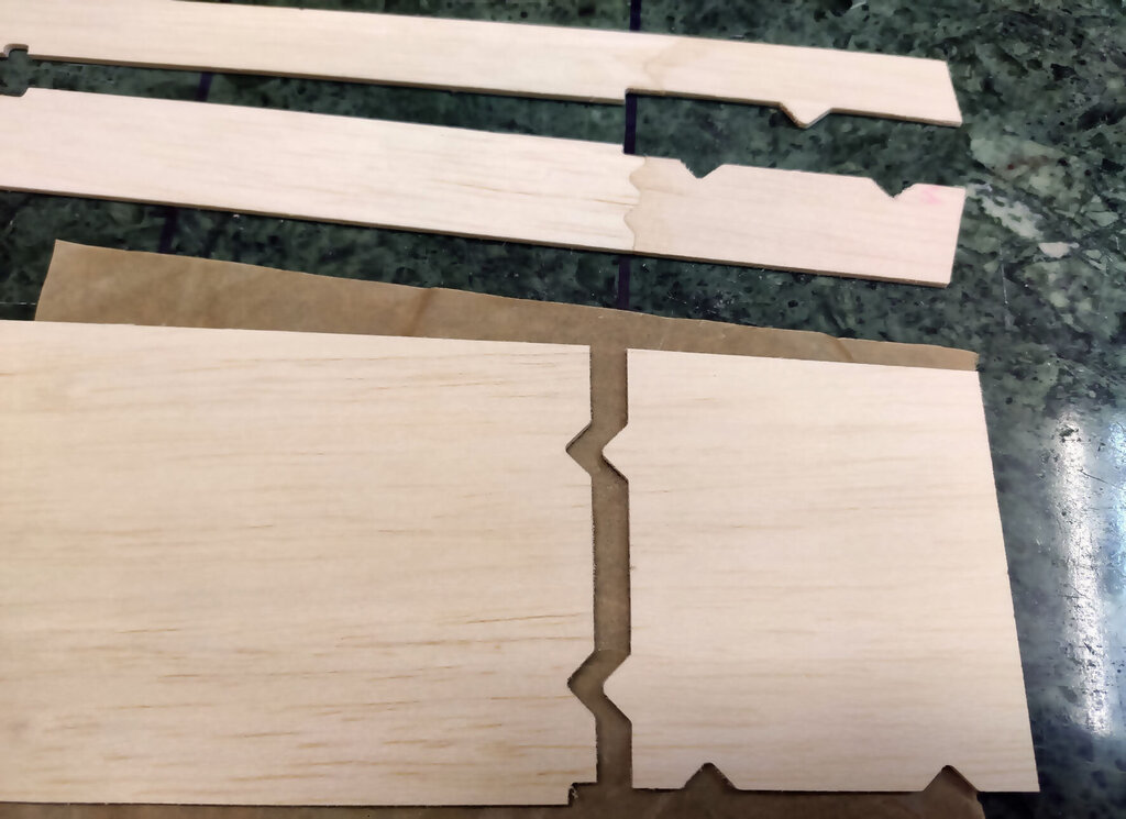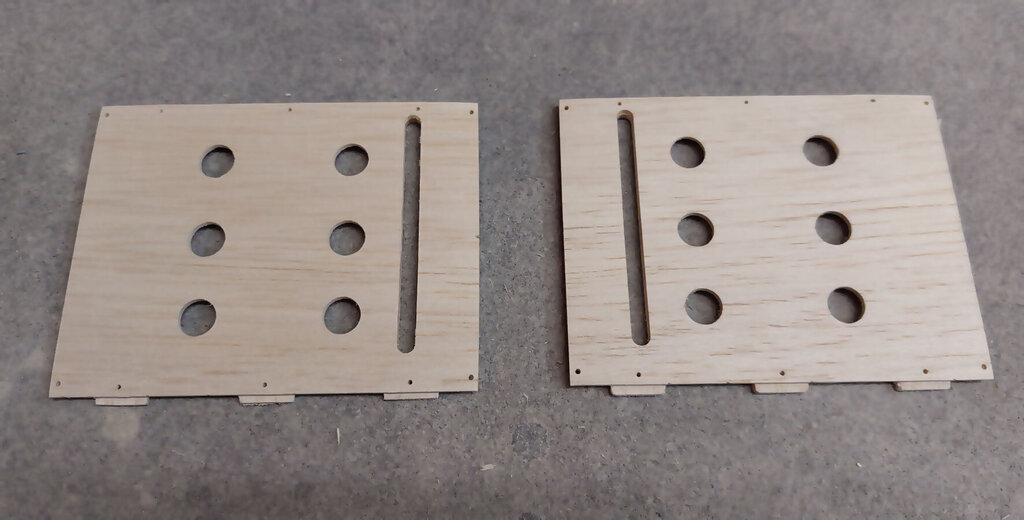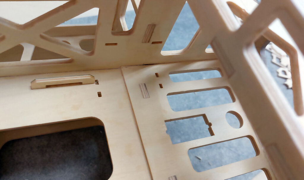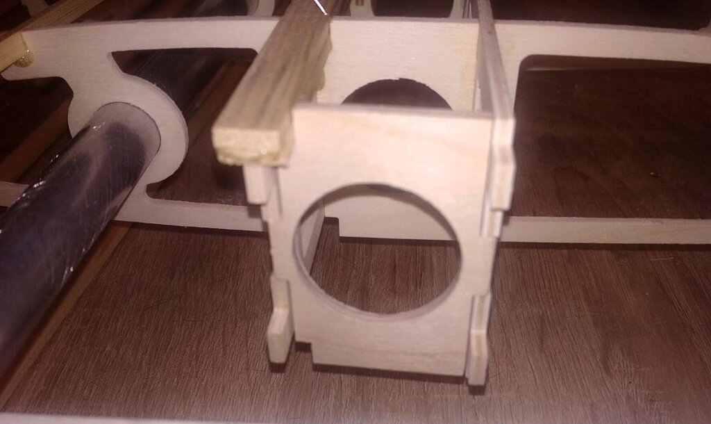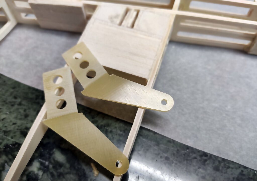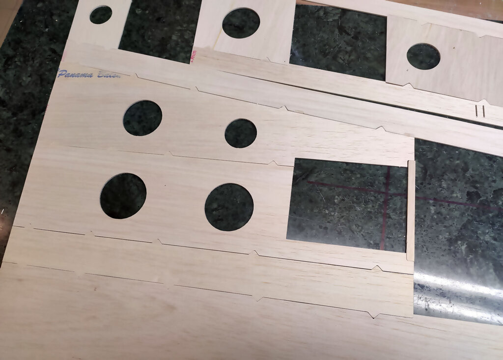 Trochę trwał ten jeden dzień. Prawie 3 tygodnie. Ale za to dzisiaj już skończę tę relację. CD... Przed pokryciem skrzydła balsą jeszcze kilka czynności. W lotce trzeba wzmocnić miejsce mocowania dźwigni. Wklejamy też kieszeń na rurę. Oczywiście na żywicę. NIestety nie mam zdjęć ale potem przy pokrywaniu skrzydeł można to jeszcze zobaczyć chyba. Aby rura się nie przesuwała to przygotowane macie takie paski prostokątne. Jeden ze sklejki miękkiej drugi z twardej. Trzeba je razem skleić i wsunąć w prostokątne otworki pomiędzy dźwigarami sklejkowymi tam gdzie się kończy kieszeń. Jeszcze raz przypomnę. Przy wklejaniu kieszeni na rurę, rura powinna być w kieszeni. Bo żywica zasychając obkurcza się i może być potem kłopot z włożeniem rury. Gdyby jej nie było podczas wiązania żywicy. Rurę dokładnie zabezpieczyć aby się nie przykleiła do kieszeni. Teraz trzeba przygotować pokrycie z balsy. Trochę podszlifować bo teraz łatwiej niż po przyklejeniu. Pamiętać trzeba, że góra i dół różnią się. W dolnym poszyciu jest otwór na mocowanie serwa. No ale to chyba oczywiste. Poniżej seria zdjęć z przyklejania poszycia. No i po zaschnięciu szlif. Jeżeli ktoś zechce w przyszłości stosować tak zwane winglety to przed obklejaniem folią trzeba jeszcze wkleić takie wzmocnienia. No i skrzydło prawie gotowe. Teraz pozostaje jeszcze odciąć lotki i przykleić listwy trójkątne lub listwy sposobem jak opisałem podczas montażu sterów i stateczników. Ale tutaj ważna sprawa. W sterach i statecznikach te listwy przy kadłubie są zeszlifowane do krawędzi. Natomiast na skraju jest tak jak poniżej. Po to są te trójkąty aby pomóc to rozkminić i doszlifować. NATOMIAST W SKRZYDŁACH zrobiłem inaczej. Listwy na całej długości szlifujemy do kantu skrzydła. Też są przygotowane do tego trójkąciki więc trudno o pomyłkę. Jeszcze pozostają zaślepki do zakrywania serw. Tutaj łatwo się pomylić więc wstawiam zdjęcia. Podczas projektowania wydawało mi się, że te klapki będą na tyle giętkie że da się je włożyć tak aby wystające zabezpieczenia z pasków balsowych trzymały je na miejscu. Niestety to nie zdało egzaminu bo klapka okazałą się zbyt sztywna. Ale to naprawdę nie jest problem. Do klapek przyklejamy wzmocnienia z pasków. Są przygotowane otworki, które pomogą idealnie je zpozycjonować (jest takie słowo?). Po przyklejeniu zeszlifować listwy balsowe. Ma to wyglądać tak: I po obklejeniu w skrzydłach będzie to wyglądać tak jak poniżej. Mocowanie na wkręty o średnicy 2 lub 2,5 mm. Teraz można już wkleić też bolce stabilizujące do skrzydła i stateczników. Ja zastosowałem zwykłą aluminiową rurkę z Mrówki o średnicy 10 mm. Co niektórzy wklejają węglowe. Ale to nie ma znaczenia. Aluminiowe tańsze dużo. Przygotować jeszcze otwory pod zawiasy i skrzydło odłożyć do późniejszego obklejania folią. Jeszcze kilka uwag do kadłuba. Tzw domek wzmacniam trójkątami basowymi. Tak jak poniżej. Od środka przy "fajerłolu" również. Nie wstawiałem jeszcze zdjęcia chyba z wklejenia podkładek sklejkowych w masce. Tu gdzie się mocuje śrubą od dołu. Pewnie się zatanawialiście nad takimi dziwnymi częściami jak poniżej. Mało kto doszedł po co to. Więc wyjaśniam. Różne silniki mają inne dojścia do dźwigni gazu. Przygotowałem otwór na serwo w dolnej części "domku". Ale gdyby tam nie pasowało to można serwo przymocować po lewej lub po prawej stronie. Zobaczcie te otwory: W te otworki mają wejść tak zmontowane kieszenie jak poniżej. Ale tylko wtedy gdy ten otwór na serwo nie będzie pasować. Następna sprawa. Jak ktoś będzie stosował zwykłe puszki to wystarczy zrobić otwory w masce na wydechy i po sprawie. A jak ktoś zechce stosować rurę to trzeba wkleić te części. To jest tak przygotowane, że wchodzi w wręgę na styk a druga część skleja to razem. Jak komuś nie pasuje średnica tego otworu na rurę to trzeba dać znać Marcinowi jaka średnica rury ma być i się doprojektuje i dotnie. Jeszcze należałoby wzmocnić kadłub w miejscu gdzie będzie mocowana maska na dwie śruby. Ja zastosowałem taki grzybek. Fajnie to działa bo nie trzeba stosować żadnych podkładek i śrubę można docisnąć solidnie. No i teraz jeszcze muszę przyznać się do błędów paru. Większość nawet nie jest warta wzmianki bo tego nie zauważycie. Ale dwa są warte wspomnieć. Oczywiście w następnych wycinankach Marcin to poprawi. W skrzydłach tak gdzie jest otwór na serwa są dwa paski z balsy które idą wzdłuż żeberek. Są za krótkie o 1,5 mm. To nie problem bo łatwo to wydłużyć ale błąd to błąd. No i ważniejsza sprawa. Otwory w kadłubie, te gdzie wchodzą wpusty mocowania kabinki w przedniej części trzeba podciąć około 3 do 4 mm. Od strony tylnej. Bo po przykręceniu maski na śruby nie włożycie kabinki Miałem to inaczej rozwiązać podczas projektowania ale zapomniałem poprawić i tak zostało. Po oszlifowaniu wszystkiego model gotowy do obklejania. Prezentuje się tak: No i teraz obklejanie. Ten samolot robię dla kolegi Grzegorza. I Grzegorz stwierdził, że sam go sobie pokoloruje a ja mam obkleić na biało. Dawno nic mnie tak nie ucieszyło bo to 1/4 roboty przy obklejaniu. Ni finalnie tak to wygląda. Samolot oddałem Grzegorzowi i już chyba do mnie nie wróci. Pozostało więc jeszcze po pokolorowaniu wkleić zawiasy i dźwignie. Uwaga ważna jeszcze. Szczelina pomiędzy krawędzią lotki a tylną częścią skrzydłą musi być co najmniej 2 mm. Jak będzie mniej to nie uzyskacie maksymalnego wychylenia lotek bo będzie się blokować. Dźwignie i podwozie oczywiście są w zestawie. Przykręcić silnik. GP 61 do tego potrzebuje tuleje dystansowe 25 mm. Trzeba też dociąć wręgę bo ociera dźwignia ssania i wężyk paliwa. No i montaż wyposażenia. Do montażu serw w skrzydłach koniecznie dokupić wkręty 
