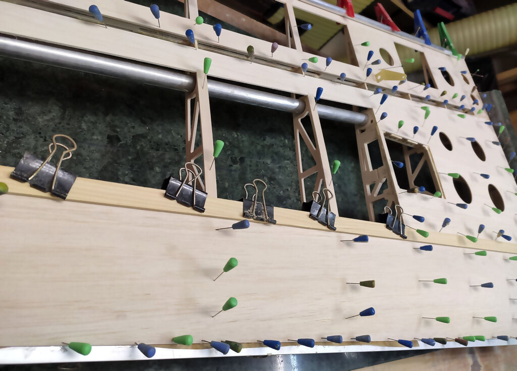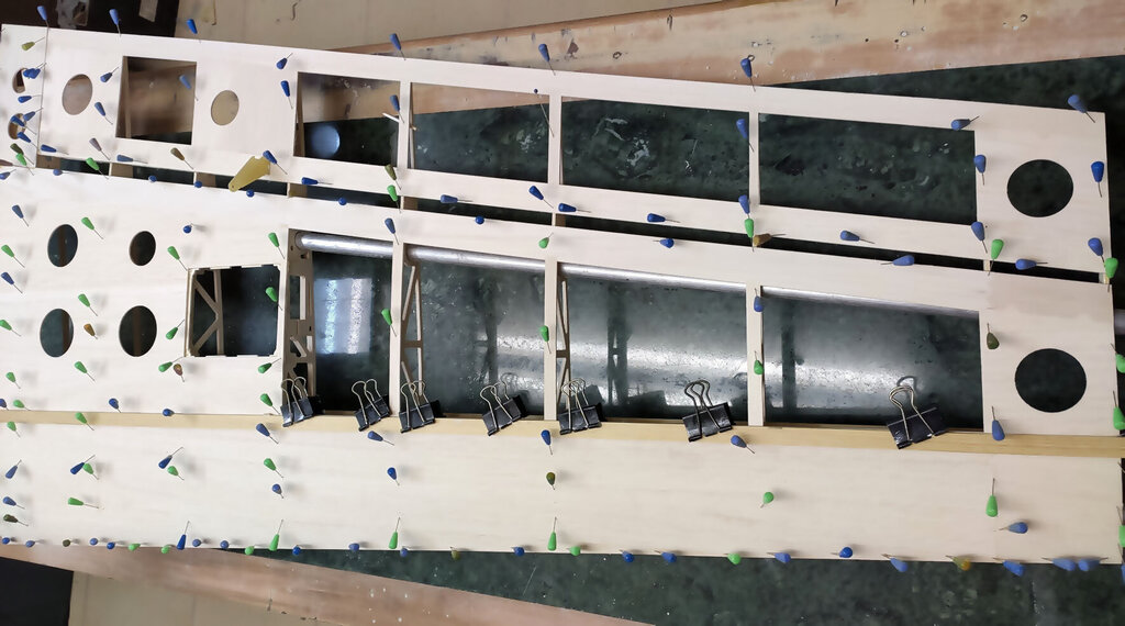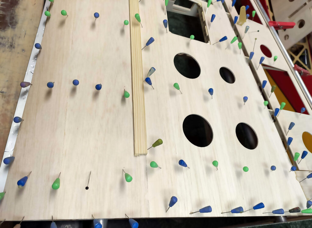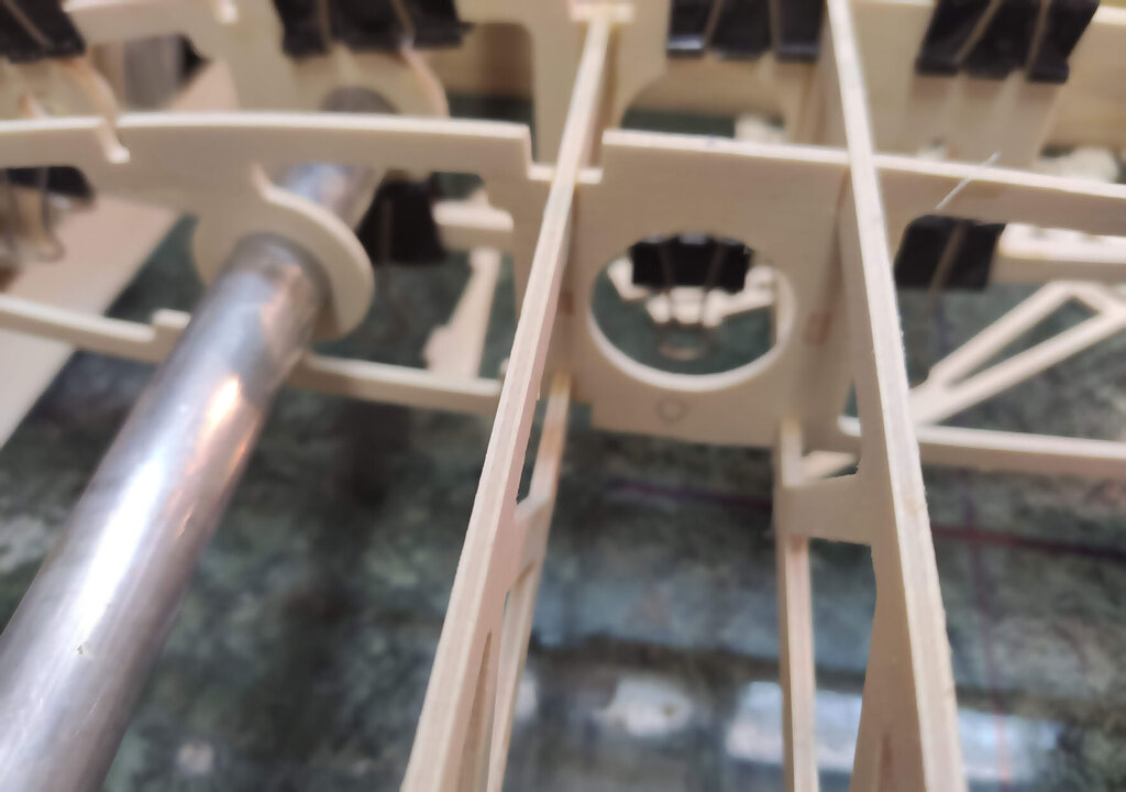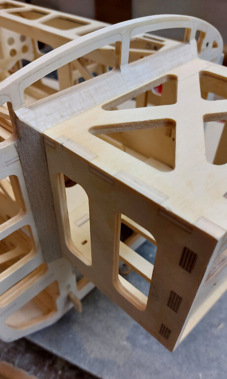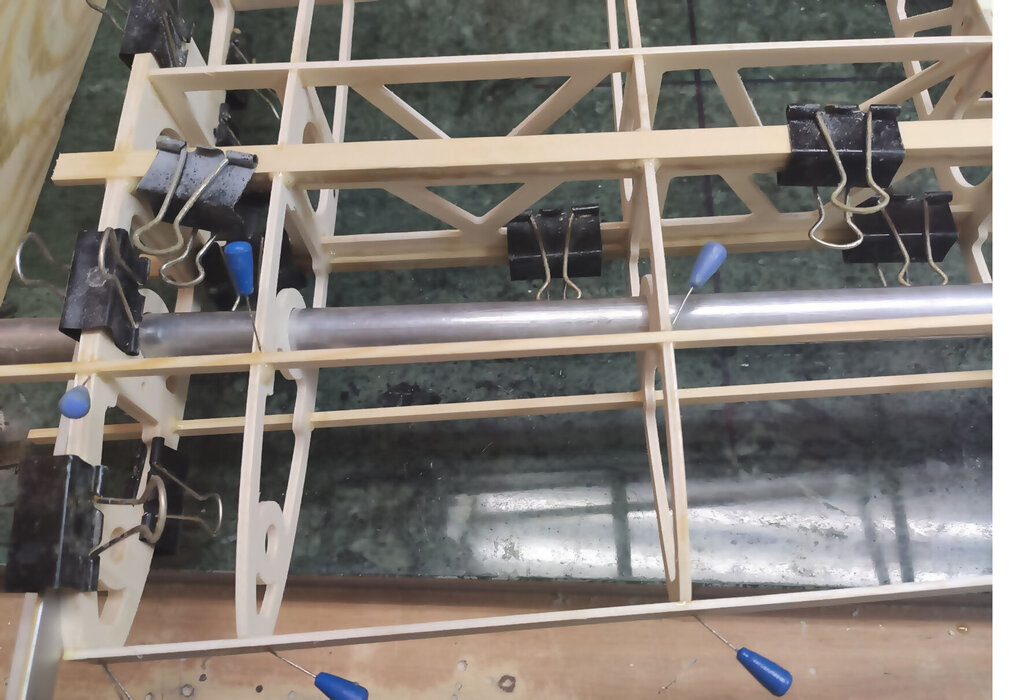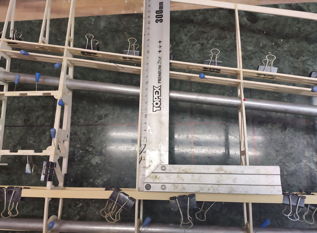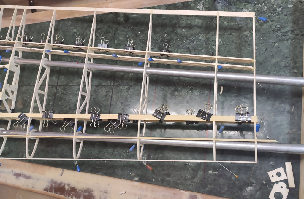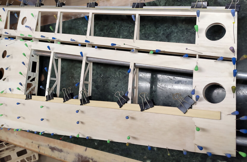 Sławek, 1. Kabinkę mocuj po obklejeniu folią. Łatwiej, mocniej i ładniej. 2. Proponuję Ci zmianę technologii kesonowania. Tak duża ilość ścisków prawdopodobnie zrobiła Ci miazgę z balsowej listwy na natarciu. No i pewnie pozostawią ślady na poszyciu. Nie potrzebujesz tak dużej ilości ścisków. - jeżeli chcesz robić ściskami to podłóż pod ściski listwy sosnowe jakieś tak z 3 lub 4 mm. I ścisków używaj w miejscach gdzie pod poszyciem są żebra. - możesz też spróbować jeszcze łatwiejszego sposobu. Spryskaj wodą poszycie. Potem przyłóż do konstrukcji i przyszpilkuj. Ta balsa po spryskaniu zrobi się podatna na wygięcia. To nie musi być bardzo dokładnie zrobione. Na drugi dzień po wyschnięciu wystarczy pokryć konstrukcję klejem i użyć tylko szpilek. - no i dobry jest też sposób Konrada. Czyli taśmą obklejasz naokoło i wspomagasz szpilkami. Tak jak wspomniał Konrad poszycie nie może z przodu wystawać za bardzo. Pozdrawiam