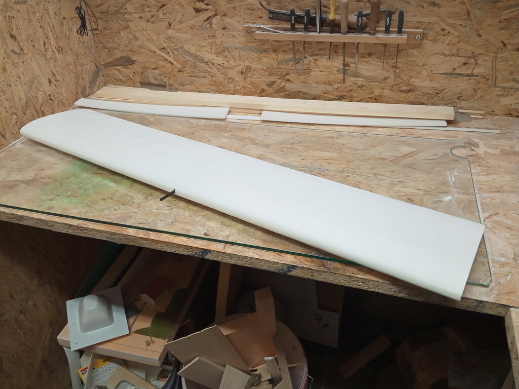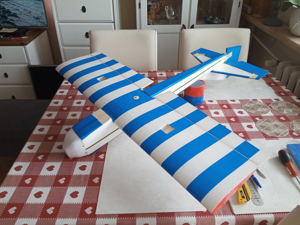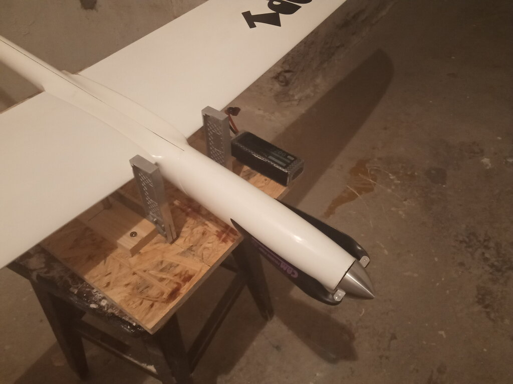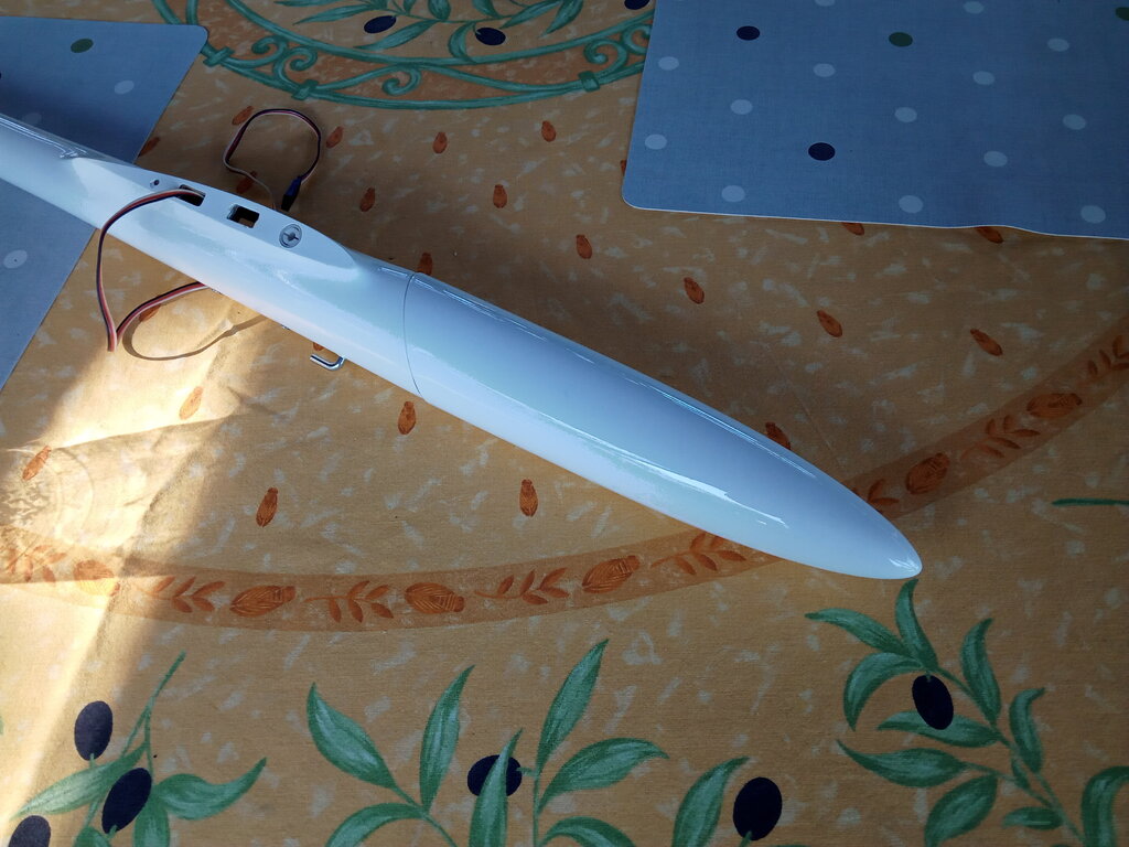 Chyba coś z tego będzie? Ogólny wygląd już motoszybowca? Doważyć przód i tak trzeba maxymalny pakiet jaki wchodzi to 3s 2200mha. Jeszcze jakieś otwory do chłodzenia napędu i .......