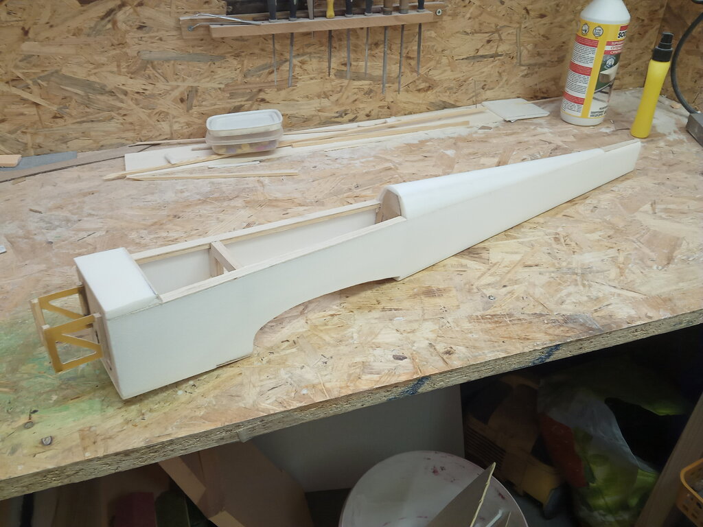 Dzień dobry. Korzystając z uprzejmości kolegi Motylastego, postanowiłem popełnić jakieś latadło z depronu. Jest to moje pierwsze podejście do tego materiału. Zobaczymy co z tego wyjdzie. Na chwilę obecną prace są na etapie widocznym na zdjęciach.