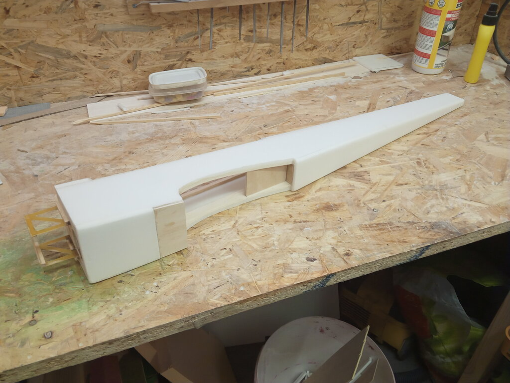 Po kilkunastu lotach Fregatą a lata wspaniale przyszedł czas na modyfikację. Pytanie do kolegów. Czy ktoś z was dorabiał klapy w takim skrzydle( styro rdzeń i fornir)? Czasami tych klap brakuje do lądowania.