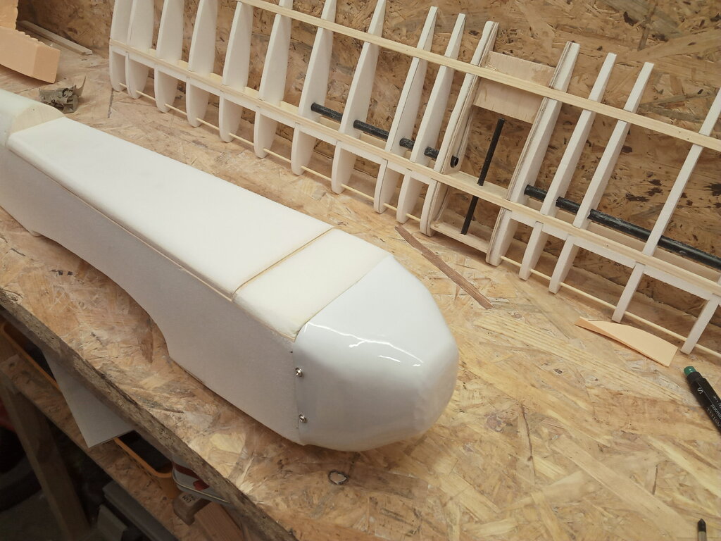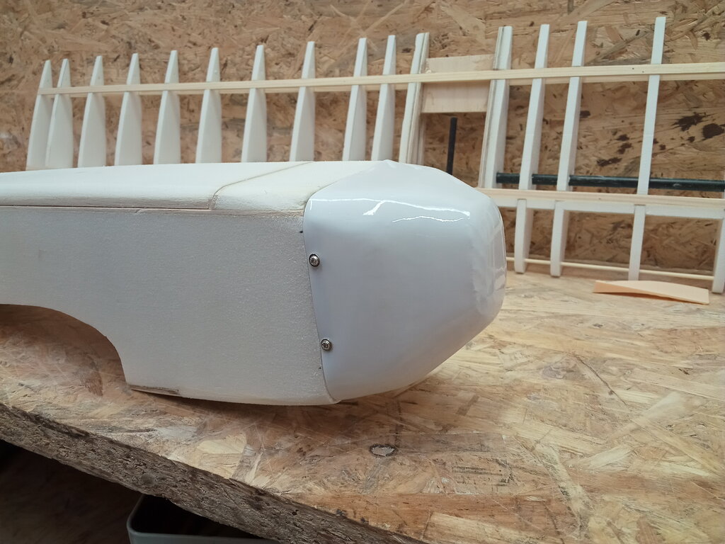 Prac ciąg dalszy. Doszedł balast na ogon. Z racji tego że mało miejsca jest w ogonie na około 35gram ołowiu, powstał pomysł dorobienia ala płetwy ślizgowej po pomalowaniu myślę że jakoś to będzie wyglądać.