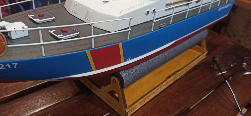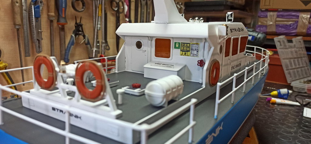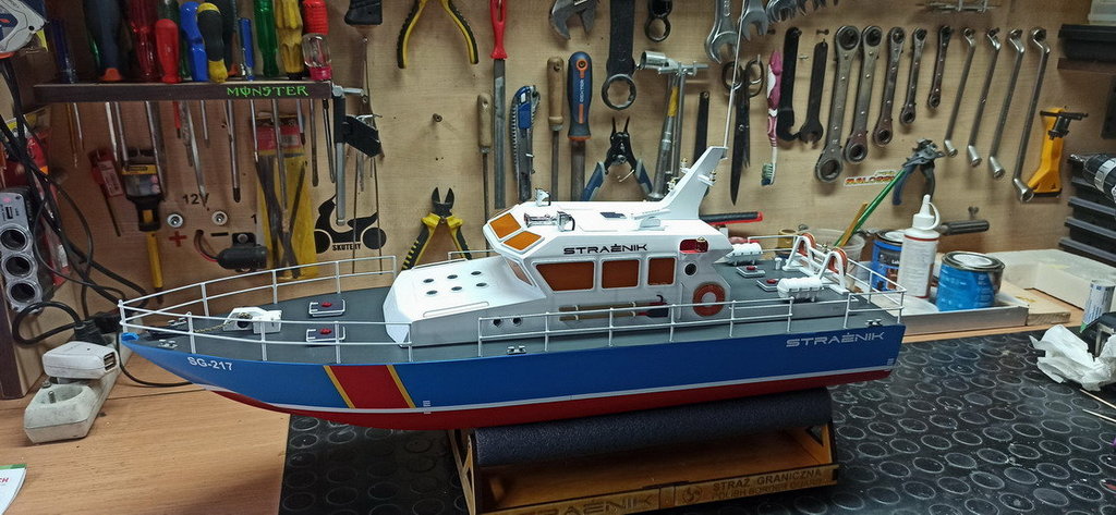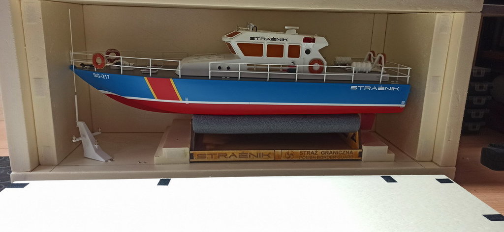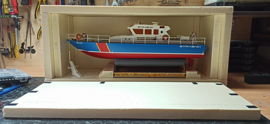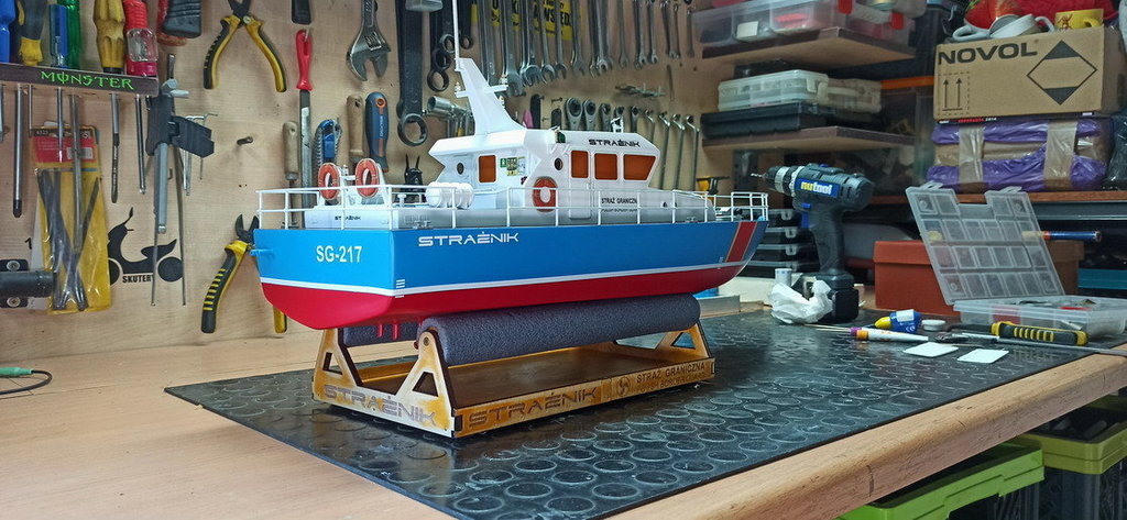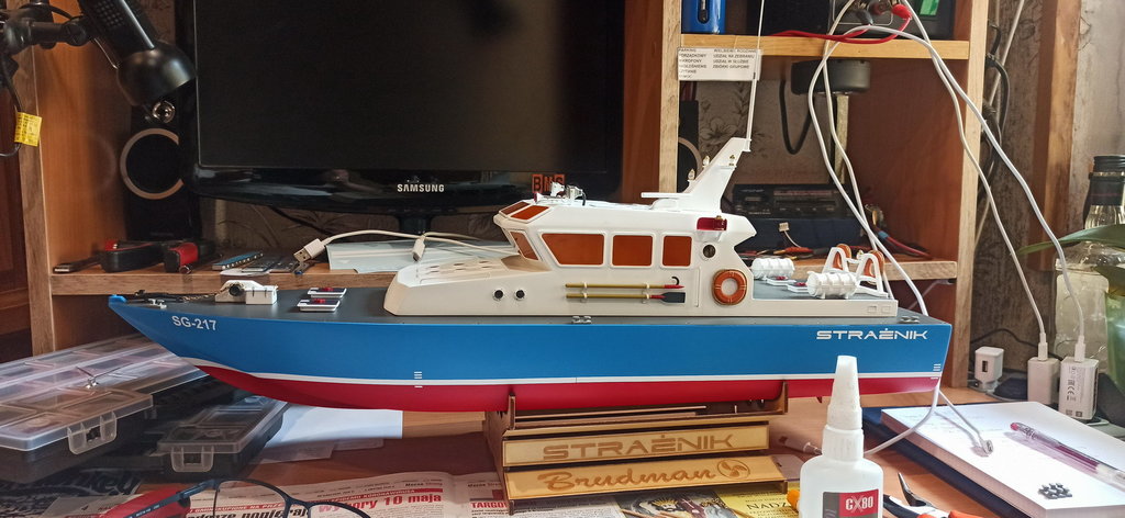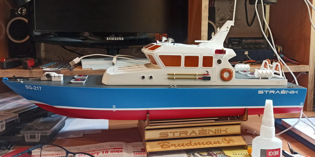 Udało się uzbroić model w 99% Dodałem relingi ,drobiazgi i wyposażenie RC. Teraz wodowanie i skrzynka transportowa. -