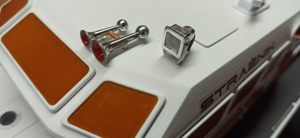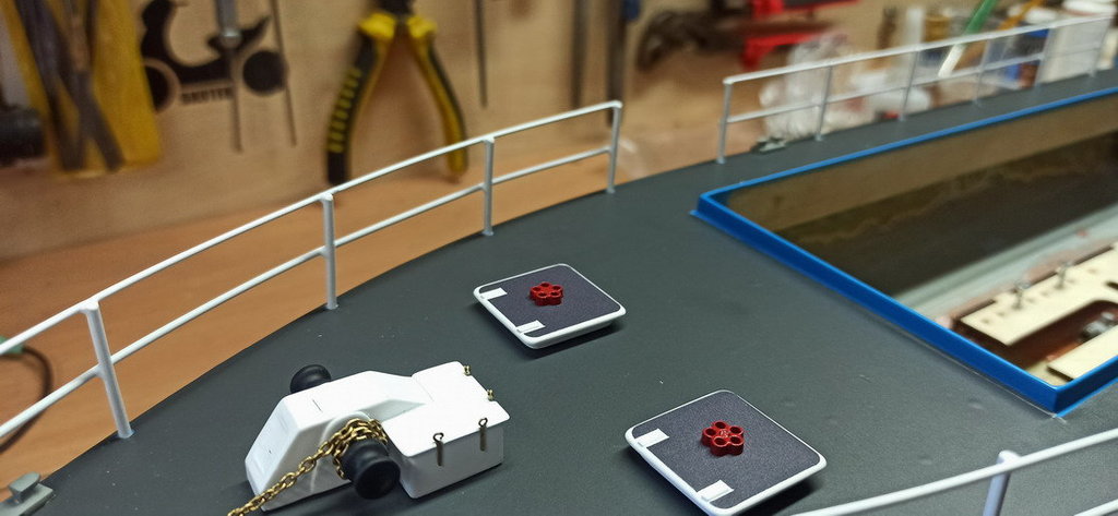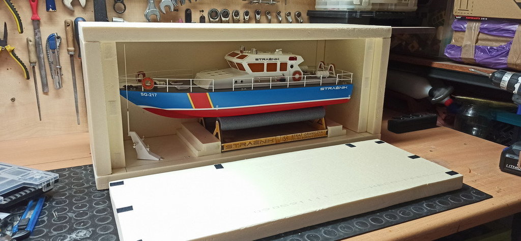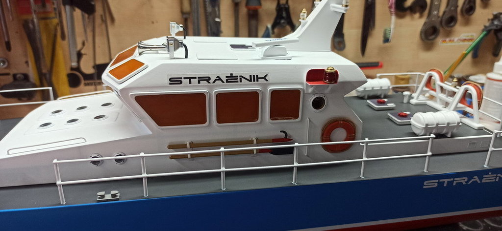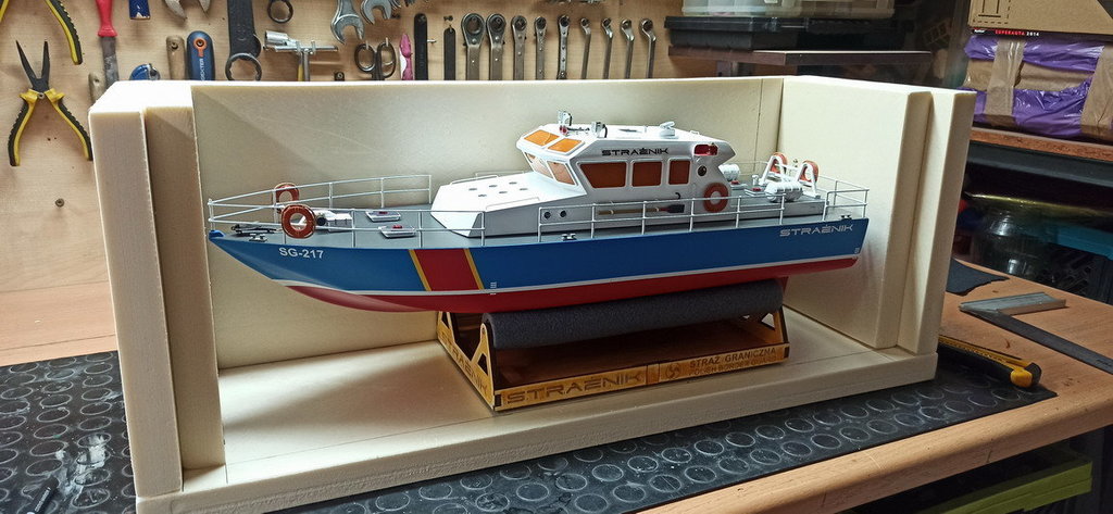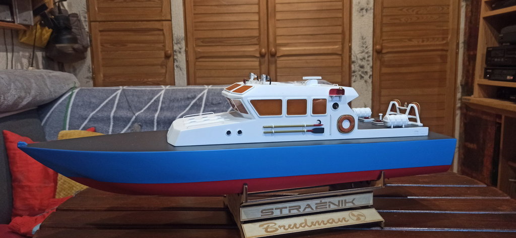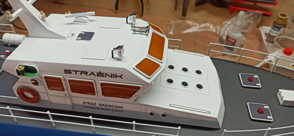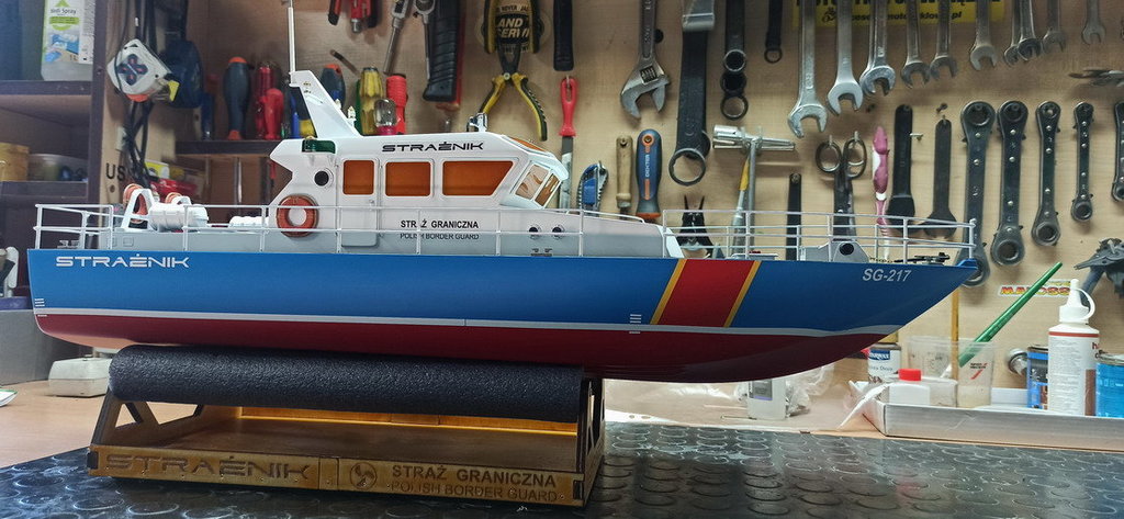 Udało się uzbroić model w 99% Dodałem relingi ,drobiazgi i wyposażenie RC. Teraz wodowanie i skrzynka transportowa. -