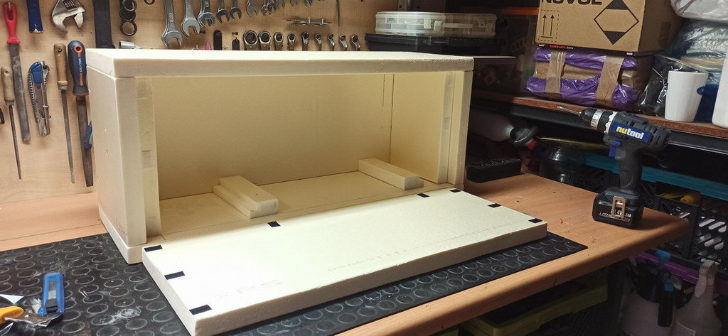 Jak pisałem wcześniej zrobiłem ze styroduru 3mm skrzynkę transportową i zawiozłem model aby zwodować. I wodowanie -