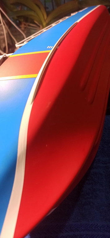 Dziękuję za uwagi i wyjaśniam. Szarpnięcie i inne tego typu zjawiska to zabawa z gazem i ustawieniami "dual rate" w radiu. Ciasny zakręt był na maksymalnym wychyle steru ustawionym do manewrów a nie szybkiego pływania... Mnie ta fala też się nie podoba. Jest rozwiązanie i je zastosuję natomiast nie wiem jak będzie skuteczne , ale podejmę próbę. Co do dziobu według mnie jest ok. Choć jeszcze popracuję nad wyważeniem. No właśnie nie chcę pływać tylko szybko. Musi być dobrze w każdym zakresie a przynajmniej przyzwoicie nad czym jeszcze popracuję. Dziękuję za komentarze i jak dogadam się już z modelem finalnie zamieszę lepsze fotki modelu i film jak pływa na akwenie. -