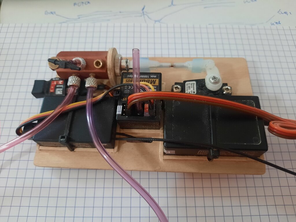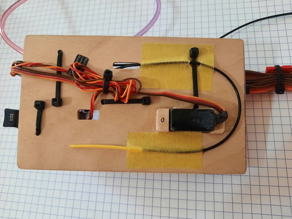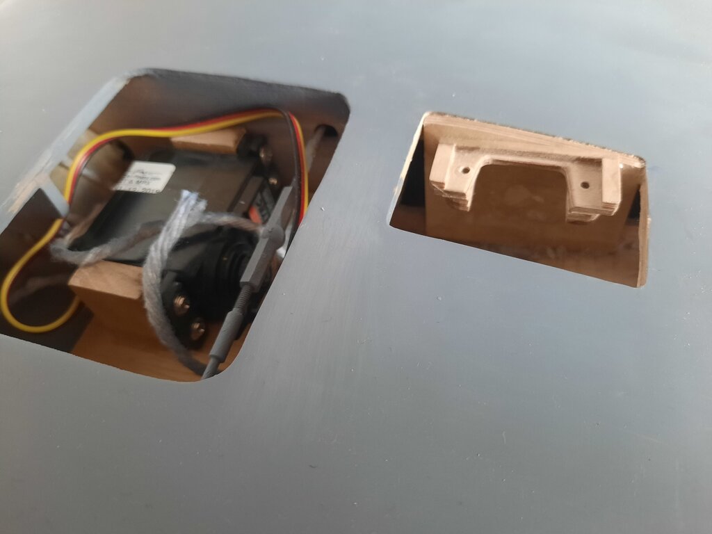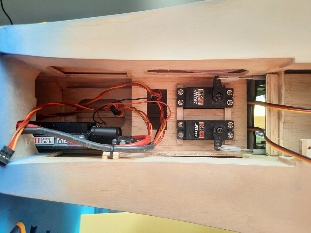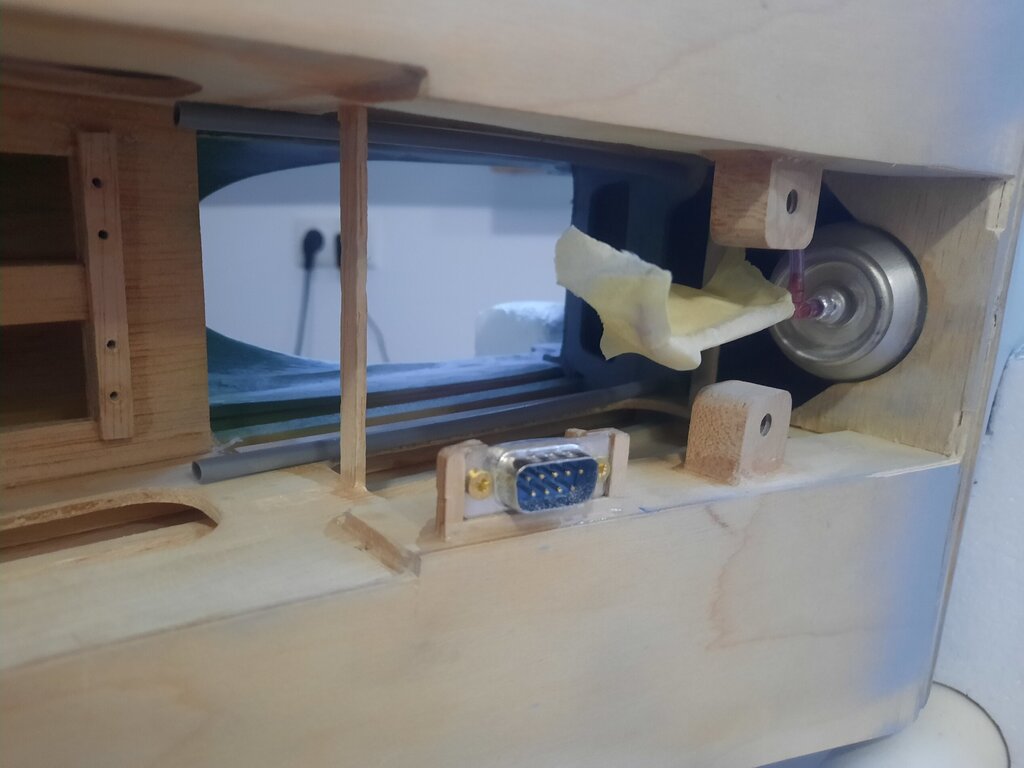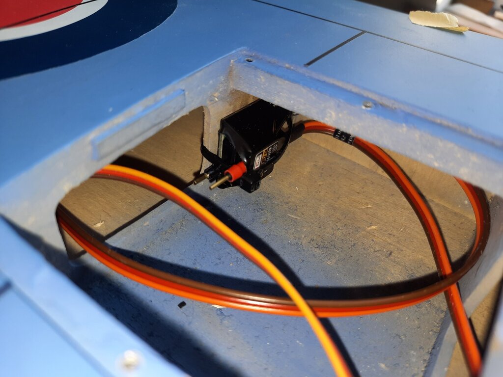 Jako że skorupa jest prawie gotowa (cały czas nie mam ogarniętej kabiny) to zabrałem się za montaż elektroniki. Na początek poszedł regulator, do którego zostało przylutowane gniazdo akumulatora. Pod osłonę silnika została wklejona ramka na gniazdo i regulator został zamontowany. Dodatkowo, by mieć pewność, że kable nie będą dotykać radiatora zostały przypięte trytytką do zrobionego naprędce zaczepu. W skrzydle zostały zamontowane serwa lotek i klap oraz podwozie. Kabelki zostały wyprowadzone w odpowiednim miejscu gdzie będą wpięte w gniazdo sub-9. Zamontowałem serwa cyfrowe które są dla mnie nie lada odkryciem. Wcześniej nie miałem pojęcia, że coś tak niby prostego jak serwo można jakkolwiek programować. Bardzo mi się podoba, że takie rzeczy jak środek i zakresy ruchu można ustawić po stronie modelu a niekoniecznie w nadajniku. Dodatkowo w serwie klap ustawiłem prędkość na 10% - klapy się teraz otwierają powoli i majestatycznie. Bardzo fajne są te cyfrowe serwa. Zamontowałem i ustawiłem również serwa w kadłubie Teraz do kadłuba musi jeszcze trafić odbiornik z resztą elektroniki. Zostały one umieszczone na płytce. Poza odbiornikiem (na dole z lewej) jest jeszcze mikro serwo (na górze z prawej) sterujące pneumatycznym zaworem podwozia (na górze z lewej), czujnik ciśnienia (na środku) w pneumatyce podwozia, moduł GPS (na dole po prawej) i czujnik ciśnienia atmosferycznego (pomiędzy zaworem i odbiornikiem) do wyznaczania wysokości. Poza wspomnianą telemetrią pod maskę silnika trafi również sensorek mierzący napięcia na poszczególnych celach akumulatora. Fabryka zrobiła go jako uniwersalny sensor dla baterii z różną ilością ogniw - maksymalnie sześciu. Zakończony był więc po prostu siedmioma pinami które można było wpiąć w dowolną wtyczkę balansera. Podłączając wtyczkę trzeba oczywiście wiedzieć gdzie jest plus a gdzie minusy. Jako że są to po prostu piny to pasuje w obie strony - można się pomylić. Poza tym takie połączenie nie wyglądało na solidne. Kupiłem więc zwykłe gniazdo balansera, wyciąłem z niego piny, nałożyłem na jakąś luźną (niepodłączoną do akumulatora) wtyczkę i taką wtyczkę z gniazdem nałożyłem na sensor. W takiej pozycji przykleiłem delikatnie gniazdo (a raczej to co z niego zostało - bardziej ramkę) do sensora tak by nie przykleić również wtyczki. Po wyschnięciu kleju delikatnie wyciągnąłem wtyczkę i już bez obaw nalałem żywicy tak by ramka porządnie się trzymała. Teraz połączenie jest solidne i nie da się podłączyć na odwrót. Mam jeszcze jeden sensor - rurkę pitota. Chciałem zrobić ją tak by chociaż trochę przypominała tę z prawdziwego samolotu. Próbowałem, to co wymyśliłem wygląda topornie. Miała być jeszcze oszlifowana, poszpachlowana i pomalowana ale już nie będzie. Będzie zamontowana w krawędzi natarcia, nie będę przy tym nawet zwracał uwagi na to że powinna być w lewym skrzydle. Trafi na tę stronę która będzie lżejsza. Muszę z tym poczekać do samego końca - czyli mam nadzieję już niedługo. Nieudana próba wyglądała tak: Być może ta telemetria okaże się mało sensowna ale spełni na pewno jeden cel. Da mi gwarancję na to, że nie będę miał takiej kraksy po które nie będzie co zbierać... -