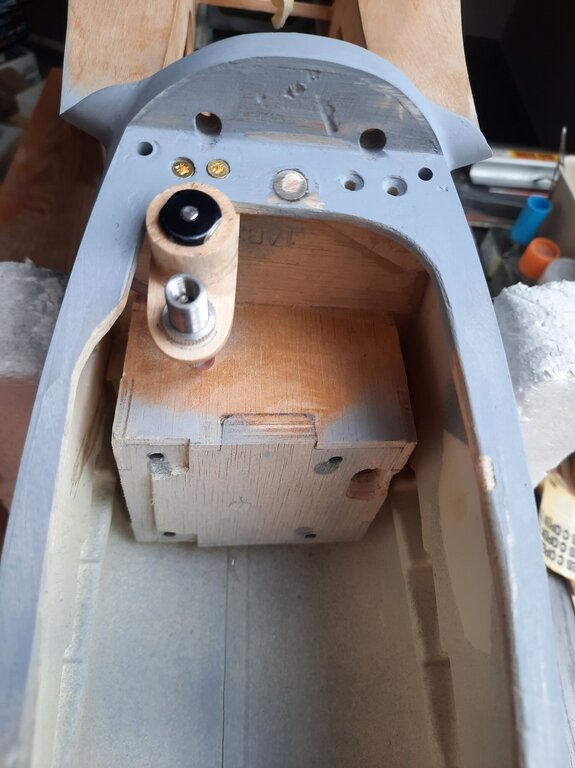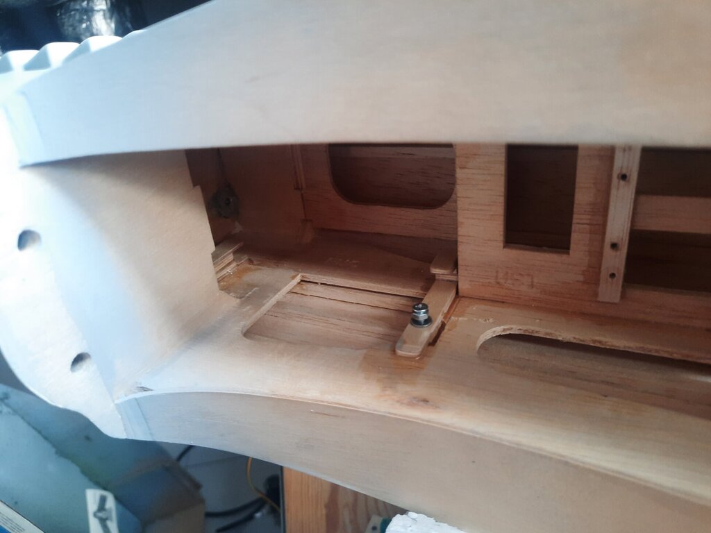 Po statecznikach przyszedł czas na kadłub. I już na własnych 'nogach'. Bardziej to przypomina łódkę niż samolot. Zamontowane zostało również koło i popychacz do sterowania nim. W oryginale orczyk miał być skierowany (mniej więcej) w przód, a idący od serwa kierunku popychacz miał przechodzić przez firewall. U mnie jest tak że orczyk jest skierowany w tył i to on przechodzi przez firewall i już po drugiej stronie firewalla łączy się z serwem. Wymagało to wyrzeźbienia innego niż w planach podwójnego orczyka ale po wielu pomiarach jakoś się udało dobrać odpowiednie kąty i długości. Miałem tu zagwozdkę. Czy faktycznie łączyć koło ze sterem, czy może jednak dołożyć osobne serwo - miejsce jest, a nawet dwa. Z jednej strony to wygodne żeby nie myśleć o 'włączaniu' sterowania nim, z drugiej to trochę dziwne cały czas machać takim dużym kołem w locie. Ciekawe jak to jest w prawdziwej Cessnie. Tak czy owak jest połączenie na stałe, będzie można zmienić jeśli przyjdzie na to ochota. Cała zmota z kołem miała na celu to by jego orczyk nie zawadzał w komorze silnika, bo tam właśnie potrzebowałem mieć miejsce na akumulator. W komorze silnika będzie oczywiście silnik - na fabrycznym stelażu. Pod silnikiem na uchwytach z jednomilimetrowej, aluminiowej blachy zamontowany będzie regulator, a za silnikiem akumulator. Taka jest przynajmniej koncepcja.- 8 odpowiedzi
