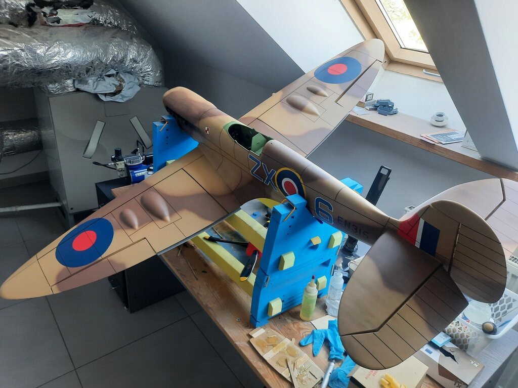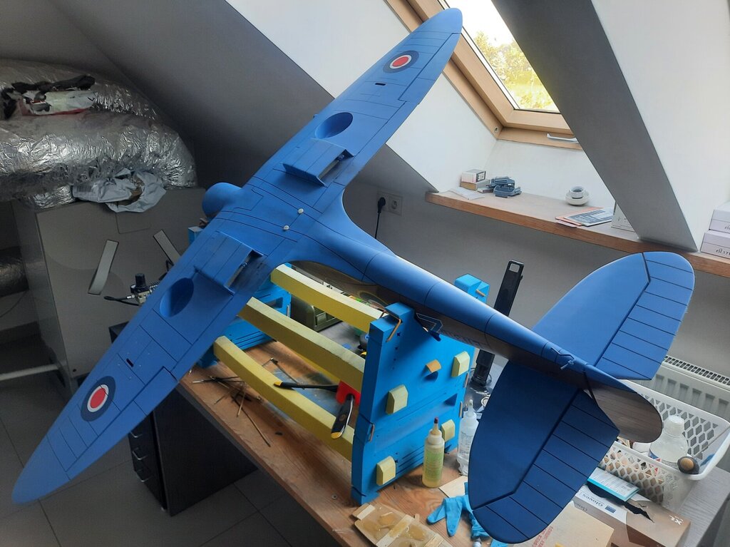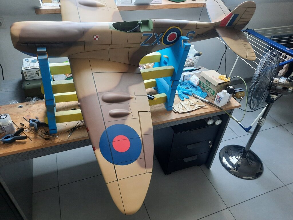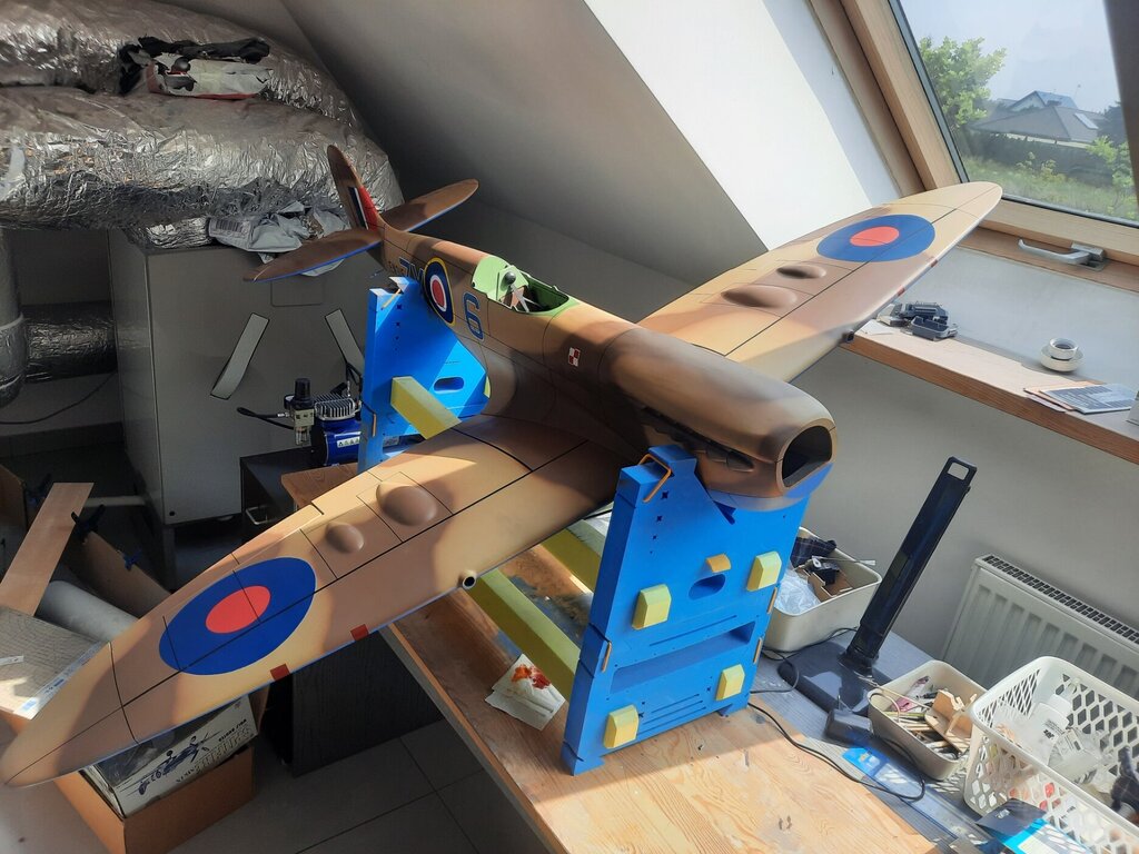 Bardzo dziękuję za miłe słowa. Oczywiście nie jest tak, że pierwszy raz chwyciłem za klej i narzędzia. Jakiś tam kontakt z drewnem, aerografem i prostym RC już miałem. Ale tak, samolot RC robię pierwszy raz. Wcześniej były inne, różne rzeczy. Niestety im więcej pracy wkładam w Spita i oglądam filmów z 'crash' w tytule tym bardziej się obawiam czy kiedykolwiek odważę się nim latać. Gdy z nim startowałem nie miałem takich obaw, teraz mam bardzo duże. Sam to pewnie ograniczę się jedynie do kołowania. Na pewno będę chciał podjechać na jakieś lotnisko i skorzystać z pomocy forumowiczów. Najchętniej to chciałbym aby ktoś mnie wyręczył o oblocie... To jest myśl! Jak to zrobić? W rękach, na jakimś wałku czy jakimiś narzędziami? -