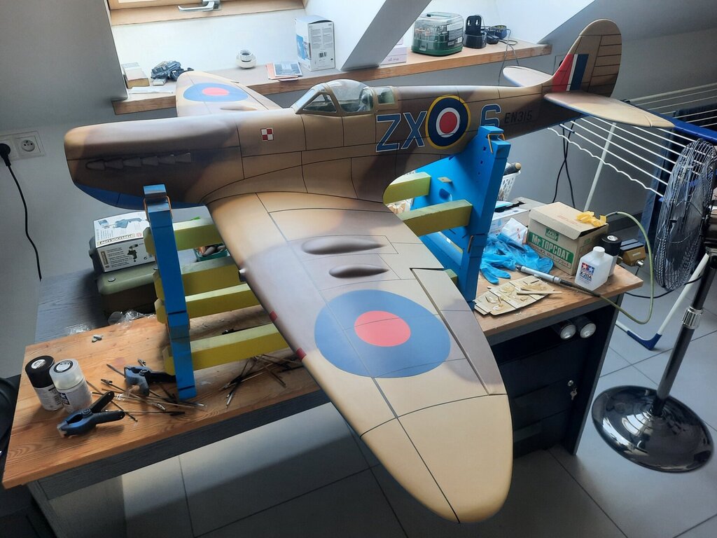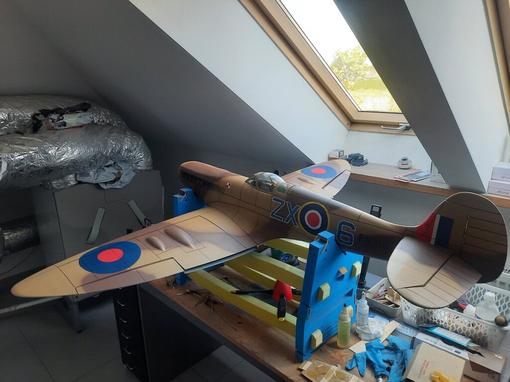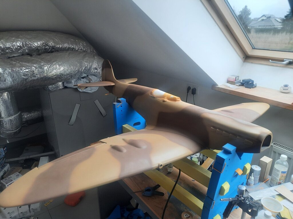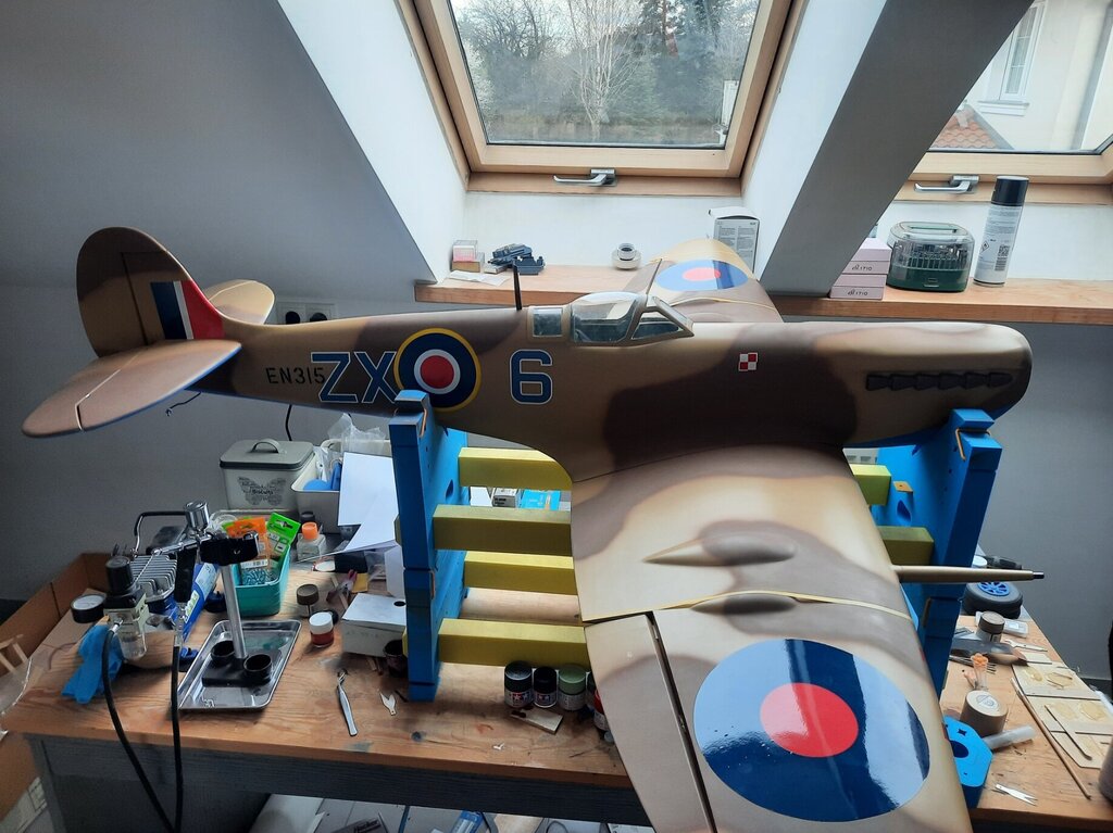 Bardzo dziękuję za miłe słowa. Oczywiście nie jest tak, że pierwszy raz chwyciłem za klej i narzędzia. Jakiś tam kontakt z drewnem, aerografem i prostym RC już miałem. Ale tak, samolot RC robię pierwszy raz. Wcześniej były inne, różne rzeczy. Niestety im więcej pracy wkładam w Spita i oglądam filmów z 'crash' w tytule tym bardziej się obawiam czy kiedykolwiek odważę się nim latać. Gdy z nim startowałem nie miałem takich obaw, teraz mam bardzo duże. Sam to pewnie ograniczę się jedynie do kołowania. Na pewno będę chciał podjechać na jakieś lotnisko i skorzystać z pomocy forumowiczów. Najchętniej to chciałbym aby ktoś mnie wyręczył o oblocie... To jest myśl! Jak to zrobić? W rękach, na jakimś wałku czy jakimiś narzędziami? -