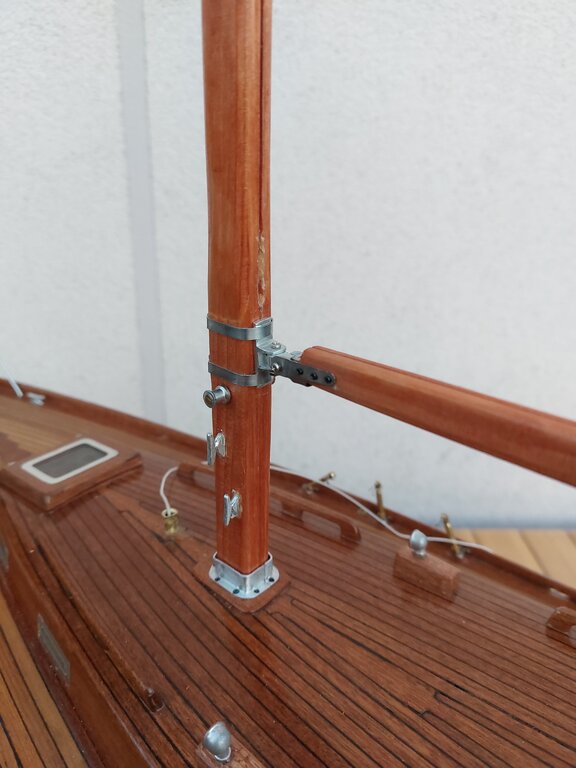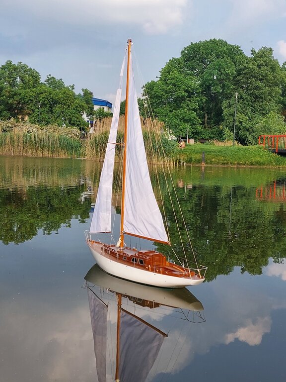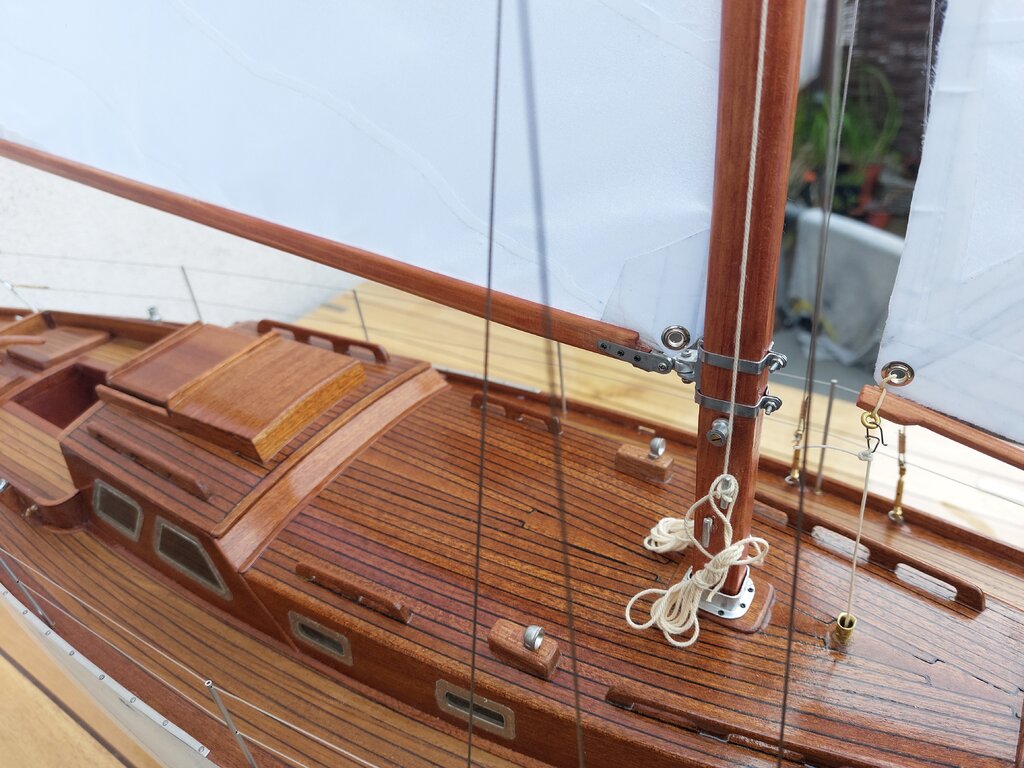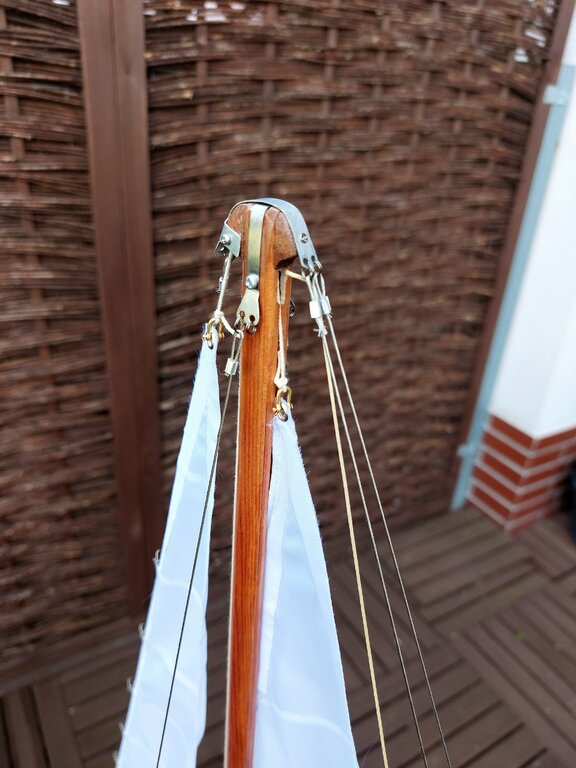 Finisz już coraz bliżej, a czasu do pracy nie za wiele. Zrobiłem już chyba wszystkie okucia, pozostało olinowanie stałe i relingi, i przy mocowaniu rumpla muszę trochę popracować. Jak już się z tym uporam, to pozostanie przygotowanie formy do klejenia żagla, no i jego wykonanie. No i do wodowania coraz bliżej ?. -