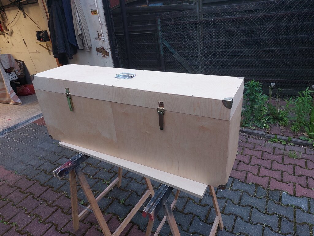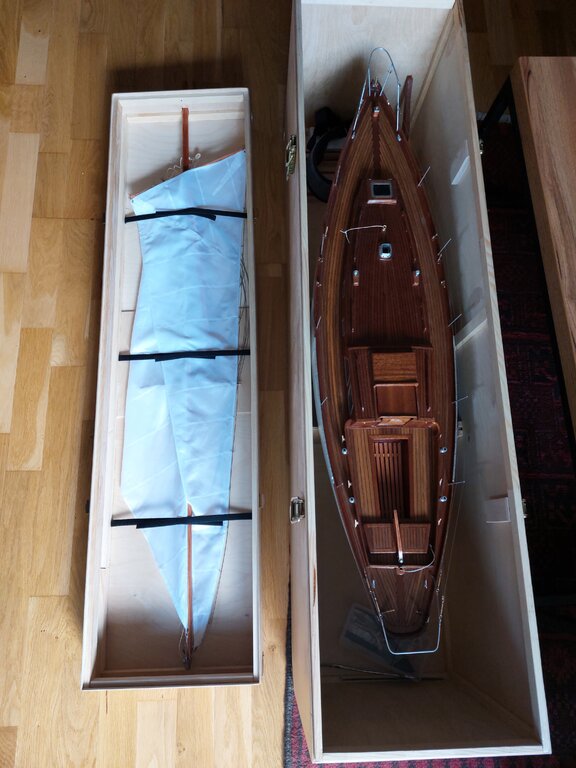 Ponieważ prace nad modelem powoli dobiegają końca i zbliża się moment wodowania, zrobiłem skrzynkę do jego transportu. Bez właściwego zabezpieczenia, bardzo łatwo można by go uszkodzić w transporcie. Maszt z żaglami będzie przymocowany w pokrywie skrzyni. -