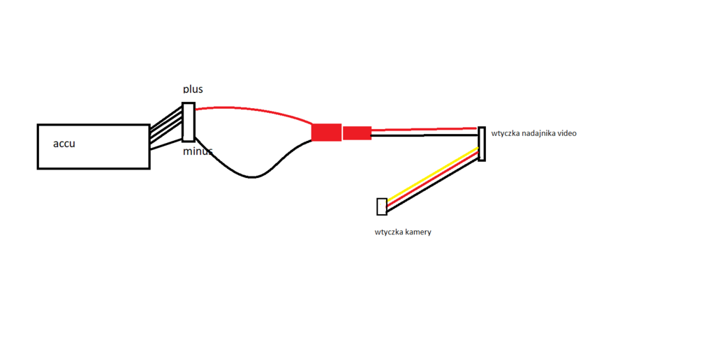Ten nadajnik TBS ma kabelek z gniazdem BEC (to czerwone?) do podlaczenia zasilania i odgalezieniem do kamery. Z tym, ze w kamerkach sa rozne gniazda i nie zawsze pasuje, wiec trzeba i tak robic czasami przejsciowke. Do kamery, ktora wybrales akurat nie pasuje. Do tej, ktora zaproponowal Przemek najprawdopodobniej tak, ale nie jestem do konca pewny. Czasami da sie cos tam podciac i wcisnac na sile ale nie zawsze... Lepiej zrobic ta przejsciowke wykorzystujac czesc kabelka dostarczonego z nadajnikiem i wtyczke z kamery. Co do zasilania (zrozumialem, ze nie chcesz montowac kontrolera). Najlepiej dokupic osobny akumulator 2 lub 3 S 400-800 mAh ( na godzine latania w zaleznosci od ustawionej mocy). Masz wtedy z glowy problemy z zakloceniami, filtrami itp... Albo to gniazdo balancera z twojego linku (jak chcesz zasilac z baterii napedowej), do ktorego trzeba bedzie przylutowac wtyczke BEC lub polutowac bezposrednio z kabelkiem zasilania od nadajnika video (przez filtr najlepiej).