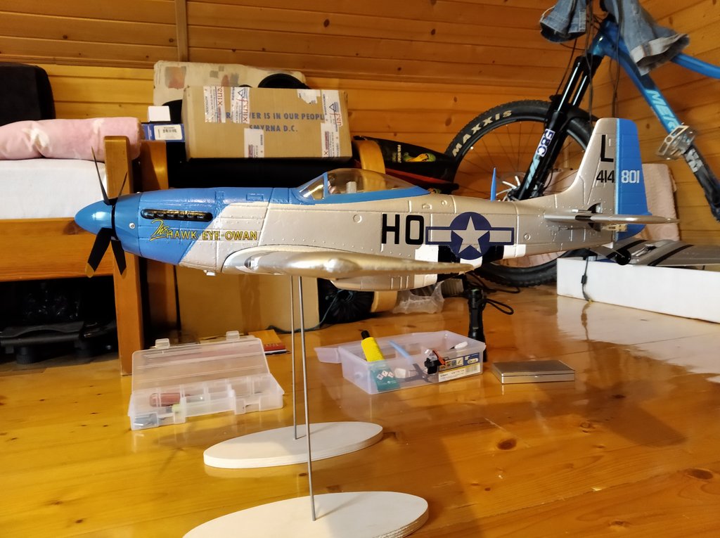 Witam serdecznie, Na początek chciałem podziękować za przyjęcie do grona :) Ja i mój syn 11lat dopiero zaczynamy to super hobby, on pilotem, ja serwisantem i sponsorem :) Wcześniej opanował naukę na mniejszych modelach np. Cesna 182 i oczywiście symulator był i jest dalej RealFlight. Zaczynamy od modeli RTF, na pewno w przyszłości zbudujemy własny model :) . Ale do sedna, sprawa dotyczy obecnego pacjenta jakim jest Mustang P51 z firmy Volantex. Złożenie modelu odbyło się bez problemu pomimo kulawej instrukcji ! Brak szczegółow , tak jak by uniwersalna. Problem pojawił się już przy pierwszej próbie lotu. Aparatura ust. bez asystenta , model mocno wypchnięty z ręki, i młody nic nie mógł zrobić . Od razu prostopadle dziobem w ziemię, trochę ucierpiał bo był wyrzucany w lekką dolinę. Dobra wymieniłem wał silnika i naprawiłem naruszony kadłub. Tym razem próba na asystencie lotu, niestety skończyło się tak samo:( Teraz nie jestem pewien gdzie leży przyczyna, wyczytałem że model należy wyważyć! No ale w instrukcji ani słowa, tym bardziej model RTF. W necie znalazłem info jak to wykonać i punkty do pomiaru, No i faktycznie na modelu są punkty C.G. zaznaczone Więc zrobiłem prowizoryczną wyważarkę . Okazało się że cała masa jest z przodu, więc dodałem ciężarki do kadłuba i udało mi się chyba wyważyć. Na razie nie próbujemy , poczekam na waszą opinie , być może to nie ta przyczyna? Pozdrawiam