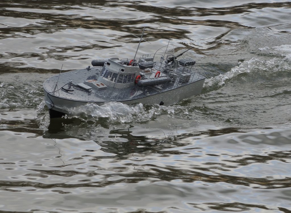 Jestem emerytem, mam dużo wolnego czasu i codziennie po 10-12 godzin byłem w stoczni. Stocznia mocno powiedziane- europaleta pod gołym niebem z małym imadłem i zestawem podstawowych narzędzi, które kupowałem w miarę jak były potrzebne. Model powstawał w szybkim tempie, gorzej było z silnikami, servami, regulatorem obr.- sklep przyjął pieniądze i moje zamówienie w czerwcu a towar po wielu perypetiach spływał do mnie do września / znany sklep z Lublina / dzisiaj omijam go szerokim łukiem i ostrzegam innych...W październiku - pierwsze wodowanie. W międzyczasie szukałem planów modelarskich - otrzymałem je gratis od człowieka któremu podziękowałem ale nasza wirtualna znajomość nie rozwinęła się - szkoda. / Dzisiaj plany są dostępne na włoskiej stronie - ale realizacja może nastąpić dopiero w październiku - odpisali mi że teraz mają wakacje...ach ci włosi/. Zbieram materiały /sklejka, listewki, blacha, itp./ i 31 października rozpoczynam kolejną budowę. 3 miesiące intensywnej pracy w domu i 1 lutego kolejne wodowanie. Model waży ok 6 kg, dł 1040 X 260, napęd w tym modelu - 2 silniki.