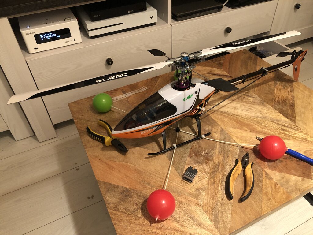 Czas się przypomnieć, bo co nieco się u mnie zmieniło, chociaż to bardziej ewolucja, niż rewolucja. Ale nie... bo jednak zmiana aparatury to jednak rewolucja. Udało mi się okazyjnie zaopatrzyć w Graupnera MX16 Hott i, choć celowałem w Aurorę 9x, to jednak jestem bardzo zadowolony. Jednocześnie, ponieważ - jak już kiedyś wspomniałem - uszkodziłem głowicę KDSa, to nadarzyła się doskonała okazja do wypróbowania aluminiowej głowicy beltowej. Głowica już stoi na nowym wale - pozostaje regulacja. No i teraz okazuje się, że zrobiłem sobie małe kuku, bo muszę ogarnąć dwa tematy, ściśle zależne od siebie: regulację głowicy i konfigurację nadajnika. Z aparaturą udało mi się dojść do takiego etapu, że serwa reagują na ruch gimbali we właściwym kierunku. Nie było to wcale oczywiste dla początkującego, bo jednak głowica w Belcie jest obrócona o 180 stopni w stosunku do większości konstrukcji. Żeby uzyskać oczekiwany rezultat musiałem potraktować rewersem dwa serwa i odwrócić pitch w swashplate mixer na ujemny. Nie wiem czy to poprawna konfiguracja, ale efekt jest ok. Następnym krokiem będzie rozgryzienie konfiguracji trybu idle/normal, bo to mi jest potrzebne do wyregulowania głowicy. Zapowiada się długa zabawa.