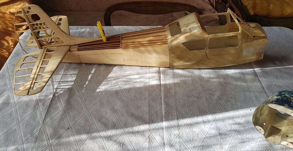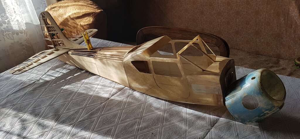 Mój Jak 12 M (A). Z zestawu (!) pozostały materiały i środkowa część kadłuba, zmodyfikowana w części przedniej i przeszklenia kabiny. Skrzydła są jeszcze nie zaczęte, panuję sloty i klapy z lotkami. Walczę teoretycznie z masą całości. -