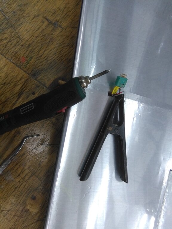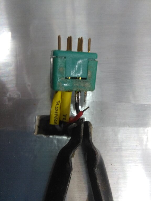 Akurat wczoraj lutowałem w nowym modelu. I zrobiłem to w niejedyny, niepoprawny (za to stary) sposób...... Chińskie złączki, chińska lutownica, za to cyna z polskiej dystrybucji. Kalafonia, jeszcze z 80-tych lat tym razem nie była potrzebna. Poszło wyjątkowo gładko ! Ale - nie zawsze jest fajnie. Dobrze sprawdza się też kwas z Obi do lutowania instalacji miedzianych. Ale pozostawiony sobie wykazuje własności korodujące. Dlatego pobielone elementy przemywam wodą i mydłem przed łączeniem. Jak łatwo zauważyć - dokładnie odwrotnie: wtyk poszedł na stałe do skrzydła.... I zazwyczaj tak robię. Gniazdo od strony zasilania. Sprawdziło mi się lutując tą zabawką przykładanie grota stożkiem wzdłuż pinu. Większa powierzchnia. Próba lutowania (takich złączy) zaostrzoną końcówką zawsze kończy się fatalnie - wydłuża się czas nagrzewania elementów, pin ma czas oddać ciepło i wyluzować się w tworzywie. - Jurek