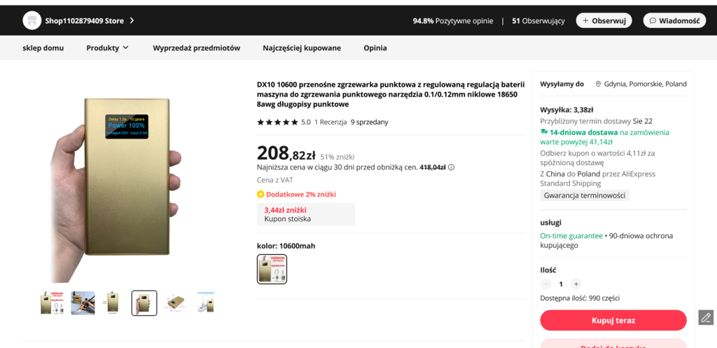 Ja kupiłem taka z niklem i stalą niklowana 0,2 nie ma problemów. w razie wyższych prądów z pakietu można dogrzać 2 paski i na 8 punktów zgrzewu. Za 200zł szkoda fatygi z kombinowaniem. zgrzewam ze 4 pakiety na rok. Przez pozostały czas zgrzewarka może robić za powerbank. https://pl.aliexpress.com/item/1005005729683980.html?spm=a2g0o.detail.0.0.739cAD1VAD1VvT&gps-id=pcDetailTopMoreOtherSeller&scm=1007.40000.327270.0&scm_id=1007.40000.327270.0&scm-url=1007.40000.327270.0&pvid=cbeb5efa-f124-4401-b42e-58da6a836e1e&_t=gps-id:pcDetailTopMoreOtherSeller,scm-url:1007.40000.327270.0,pvid:cbeb5efa-f124-4401-b42e-58da6a836e1e,tpp_buckets:668%232846%238107%231934&pdp_npi=3%40dis!PLN!418.04!208.82!!!!!%40211b5e2316909202094774724e6b3b!12000034142420047!rec!PL!1897046912&search_p4p_id=202308011303295201943609538855670567_2