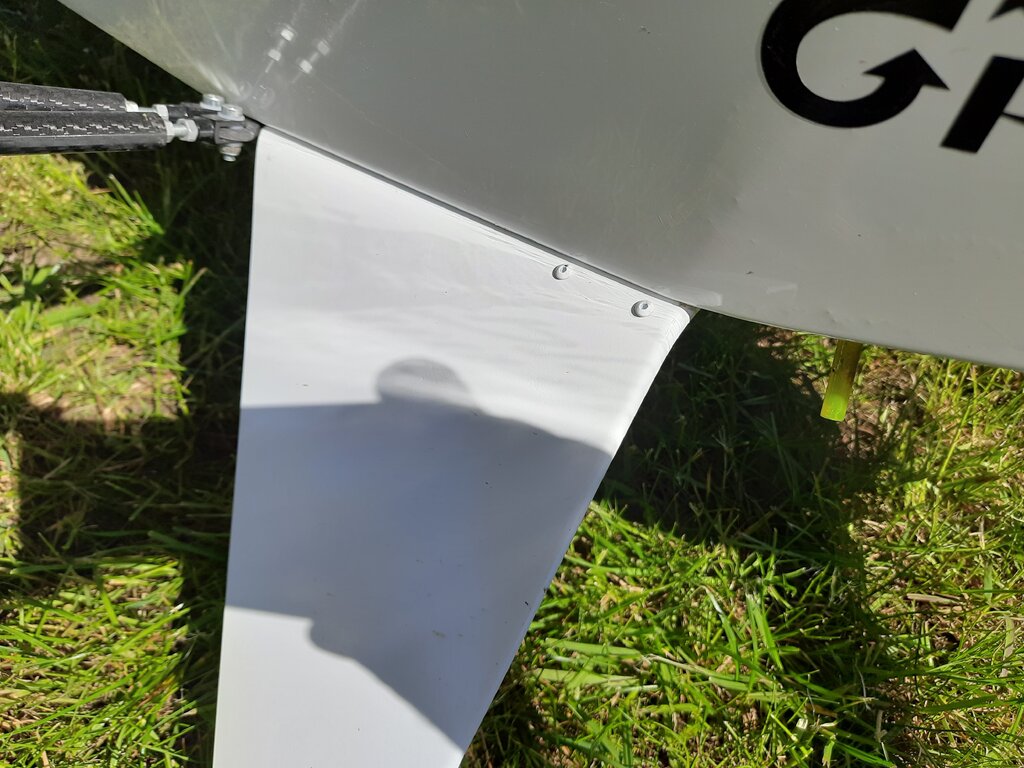 Modelem wylatałem już około 15 litrów paliwa, silnik gp 178 jest super, najlepszy jaki do tej pory miałem. Z incydentów to udało mi się uszkodzić goleń, dmuchną wiatr przy lądowaniu i przyziemiłem na jedno koło i goleń rozwarstwiła się przy kadłubie, nic złego poza tym się nie stało. Część nośna goleni miała przy kadłubie przekrój 50 x 6,5mm, zrobiona z taśmy UD i tkaniny węglowej w układzie (0UD/0UD/0UD/45PW)n, czyli 3 jednokierunkowe, jedna tkanina i takich pakietów kilka aż do uzyskania 6,5mm grubości. To przeło test dla modelu 17kg ale jest 19kg, w teście ta goleń wytrzymała 51 kg więc w przypadku lądowania na jedno koło siła dynamiczna musiała być większa. Zrobiłem nową goleń z częścią nośną przy kadłubie 60x11mm, układ warstw taki sam jak wcześniej, do tego dodałem po 2 sruby M3 na promieniu Z drobnych problemów ciągle pęka mi szybka w narożach Zrobiłem nową, chyba juz czwartą. No i latam sobie korzystając z pogody -