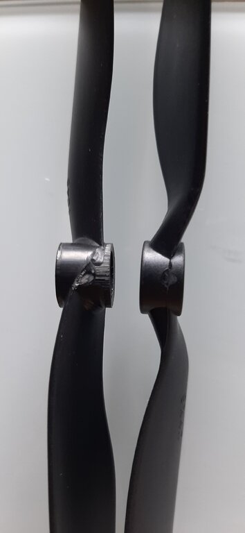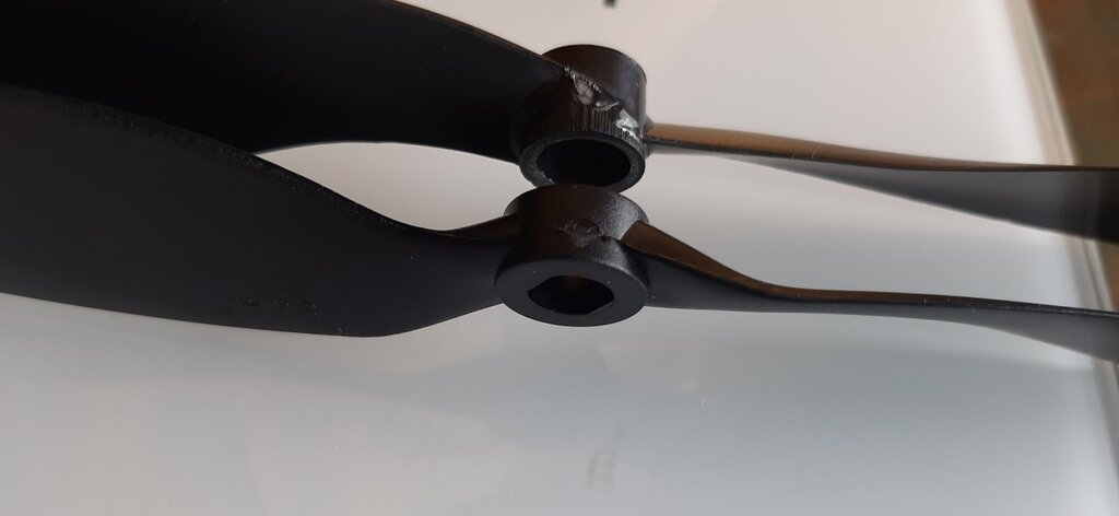 Witajcie W swoim multi stosowałem śmigła Gemfan 1045 lub 9047 z mocowaniem DJI, o takie np.: http://mmhobby.pl/smigla-9-47-komplet-pl-gemfan-9047-carbon-nylon-dla-dji-p-1009.html Ostatnio zakupiłem "odpowiedniki" Jak mi odwędrowały w locie to się im przyglądnąłem bliżej. Łatwo się domyśleć, które jest pierwotne, a które odpowiednik. Sposób mocowania do piasty: Grubość plastiku u nasady: Grubość samej piasty: No i ogólna różnica w ilości użytego plastiku: I teraz zagadnienie: Gemfan widzę ograniczył się do produkcji małych śmigiełek do wyścigówek i większe śmigła albo są zupełnie niedostępne, albo pod tą marką sprzedawane są takie właśnie "odpowiedniki". Czy ktoś widział w jakimś sklepie (spokojnie może być zagraniczny) tego rozmiaru komplety śmigieł CW/CCW, z mocowaniem DJI (taki sfazowany otwór), ale w takiej solidniejszej konstrukcji?