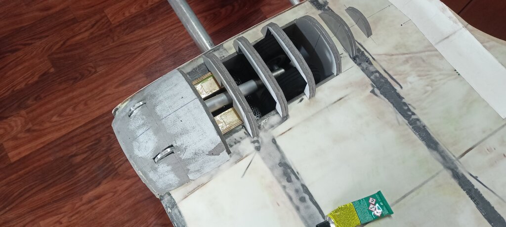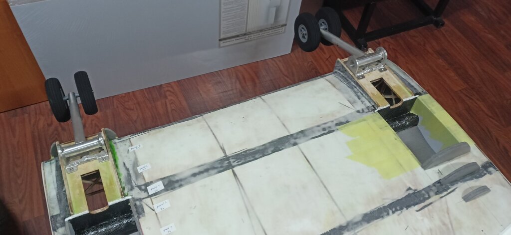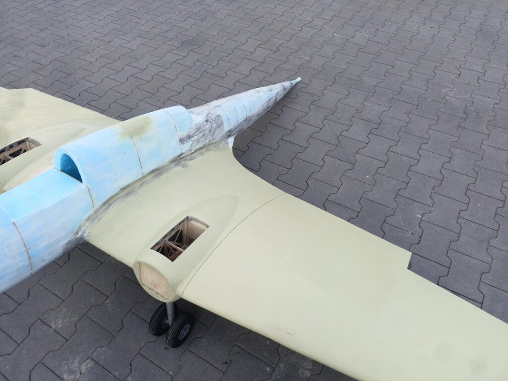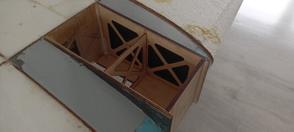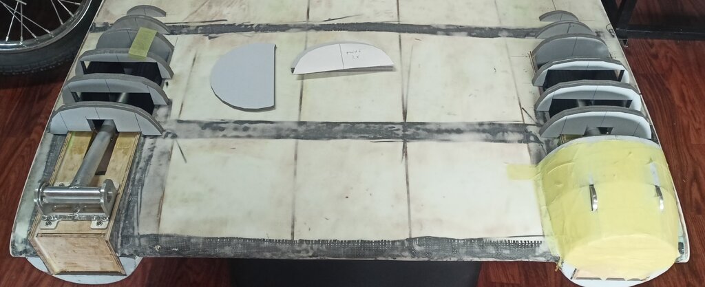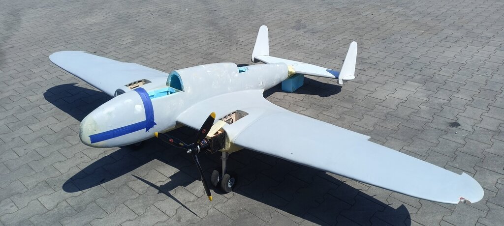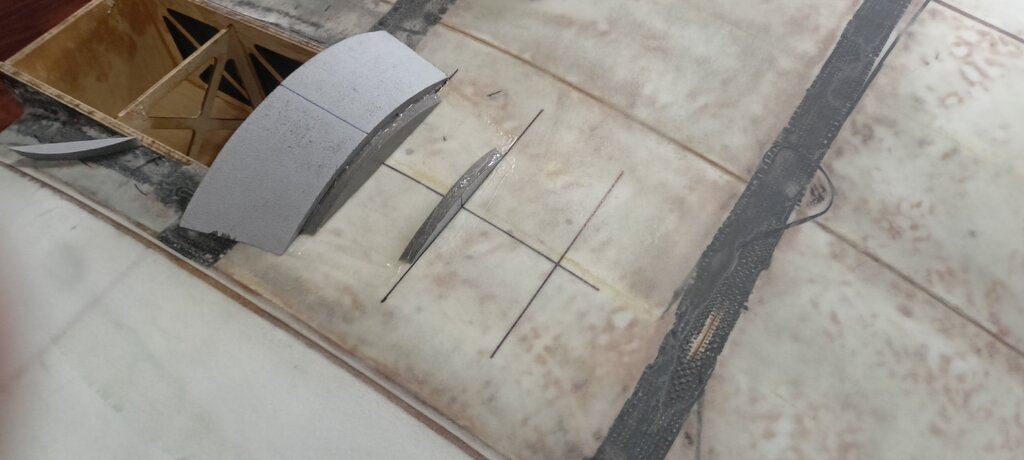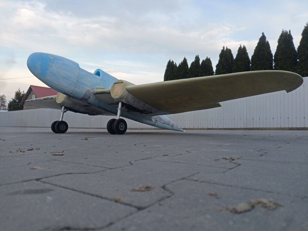 Czas na kolejny update. Coraz bliżej do końca. Powstały stateczniki gotowe do pokrycia tkaniną. Przymierzyłem też jeden domek żeby zobaczyć czy wszystko pasuje. Miejsce wycięcia pod przednie oszklenie również jest już zaznaczone. W takim stanie już wygląda imponująco, na żywo jest ogromny.🙂 Całość wygląda tak: