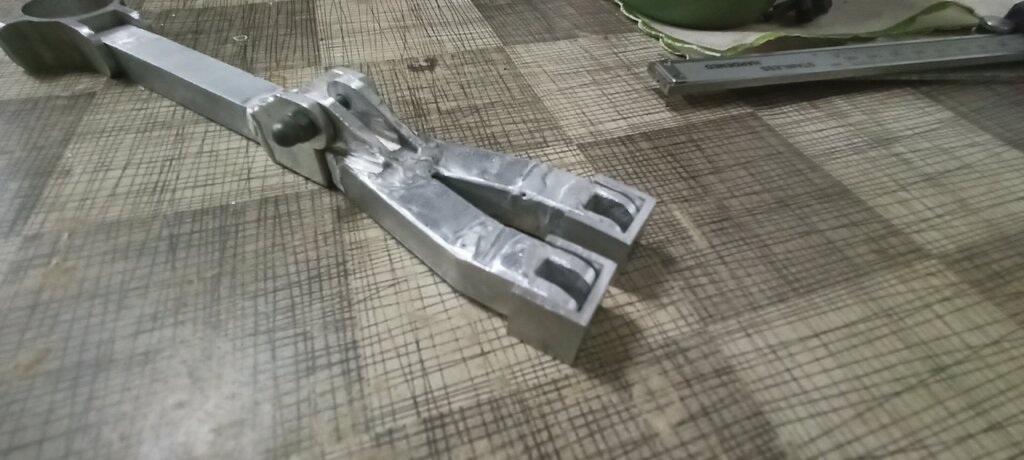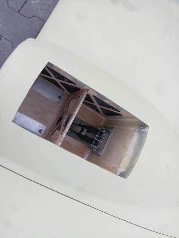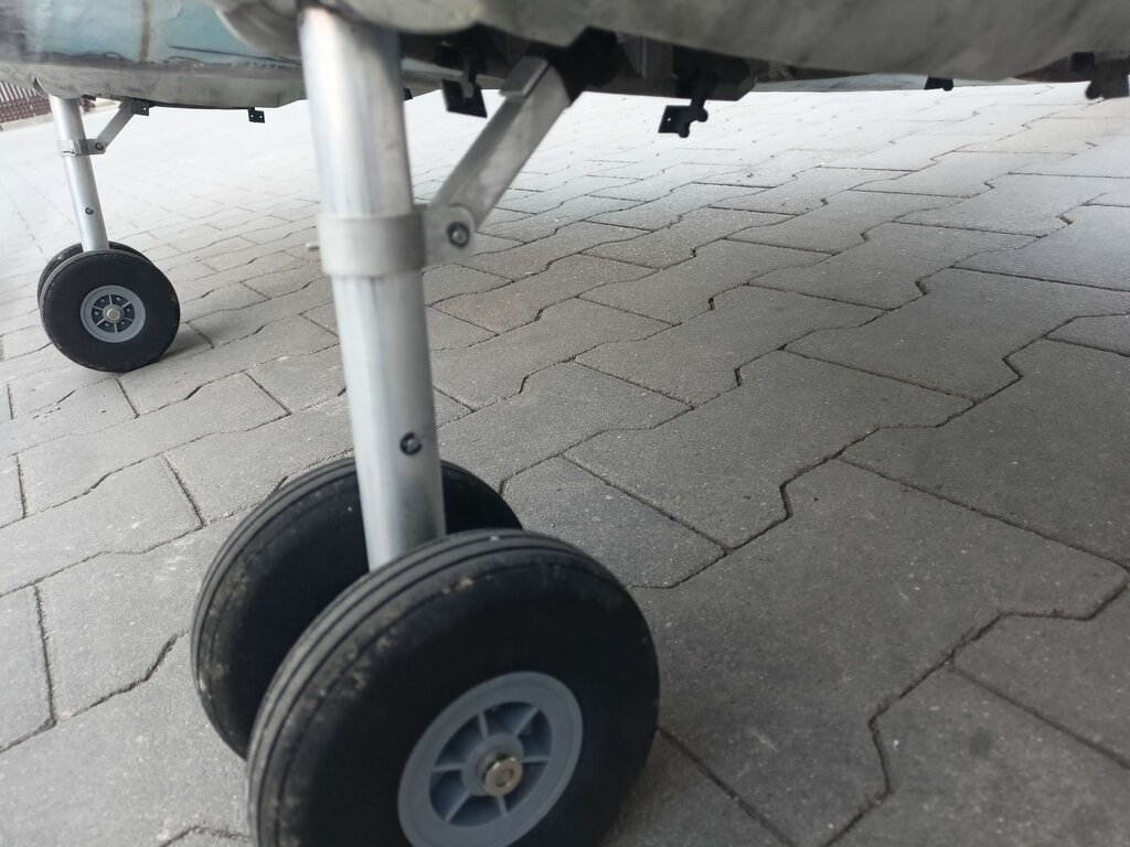 Następnie powstało podwozie wykonane z aluminium: Oraz "ramię" (nie znam poprawnej nazwy tego elementu) które utrzyma goleń w miejscu: Podwozie zamontowałem przed zamknięciem gondoli: Następnie pokryłem kadłub i końcówki, teraz Łoś wygląda tak: (kadłub czeka na szlifowanie) Coraz bliżej oblotu, statecznik jest w budowie, kompletuje elektronikę itd.
