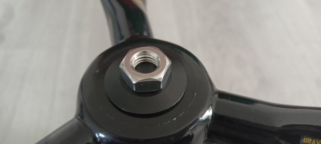 Takie coś chcę zrobić jak na ostatnim zdjęciu. Ta nakrętka z linku się nie sprawdzi bo u mnie silnik ma gwint M10. Tokarz wytoczy to z pręta sześciokątnego takiego jak nakrętka M10 (jak na klucz 17 jak się nie mylę). Oryginalna nakrętka jest ze stali A2 i z takiej też zrobię moją.
