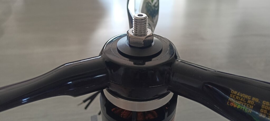 Niezłe rozwiązanie z tą nakrętką wpuszczoną w śmigło. Aktualnie otwór w śmigle ma 10mm. Trzeba by rozwiercić pewnie do 13mm na jakąś głębokość. Jakąś bo nie wiem jeszcze jak zamontuje kołpak. Kołpak zrobił bym drukowany. Kołpak mocuje się pomiędzy podkładką a nakrętka?