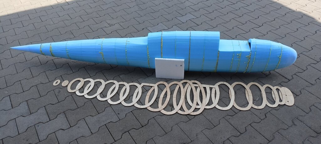 Na razie wysłałem projekt do wycięcia więc materiał można zmienić. Zastanawia mnie tylko to łatwiejsze obrabianie, cały kadłub przed pokryciem będzie do lekkiego podszpachlowania i szlifowania. I właśnie nie wiem jak styropian się szlifuje, nie chce żeby potem te styropianowe kulki latały wszędzie gdzie się da, a przy xps nie ma tego problemu - ale za to jest cięższy. Zrobię tak że kadłub będzie z xps, w kadłubie będą akumulatory i zawsze przy wyciąganiu coś się zahaczy ręką i ze styropianu polecą kulki a xps tylko się wgniecie. Skrzydła będą ze styropianu. Planuje zrobić tak że kadłub będzie wzmocniony tylko laminatem, kadłub po pokryciu będzie mocny ponieważ jest wysoki ale wąski. Pomiędzy te elementy piankowe co jakiś czas (średnio co 20 cm) zaprojektowałem sklejkowe wręgi 2 mm. Gdy kadłub będzie już pokryty tkaniną szklaną a w najbardziej obciążonych miejscami tkaniną z włókna węglowego to wtedy ocenię czy potrzebne jest jakieś wzmocnienie w środku czy nie. I tak największym wyzwaniem będzie konstrukcja centropłatu a głównie miejsca pod podwozie.🙂