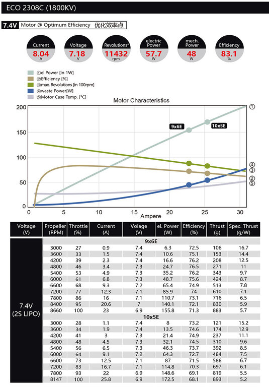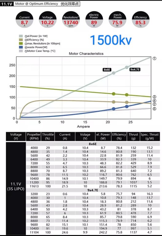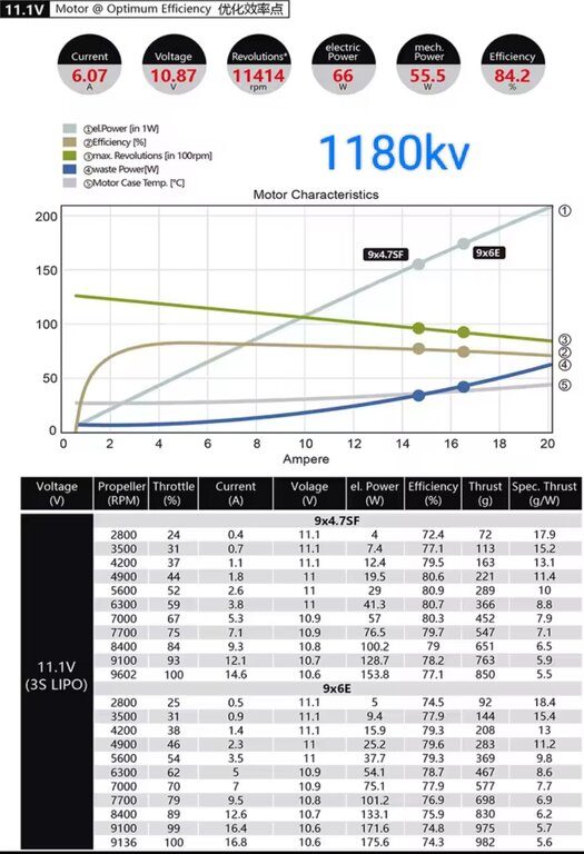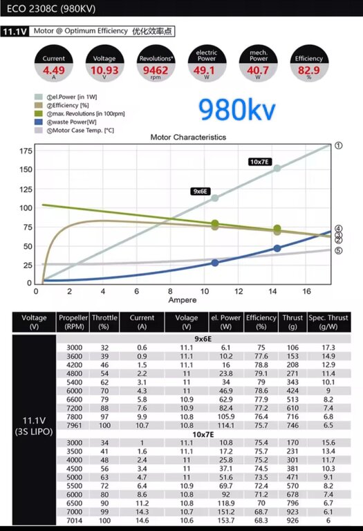 Wybieram silniki do Lancastera i potrzebuje pomocy w wybraniu najlepszej opcji. Planuję użyć 4 silników Dualsky 2308c v2. Dokładnie chodzi mi o wybranie odpowiedniego KV. Śmigła muszą mieć 9 lub 10 cali tak żeby nie wystawały pod kadłub. Ciągu potrzebuję ok. 800g (to już jest z dużym zapasem) Zacznę od opcji na 3s: 1500KV 1180KV 980KV 1500kv i śmigło 9 cali to zestaw średni pod kątem temperatury Jest jeszcze opcja żeby zasilanie było z 2S ale nie wiem jak z tym w takim dużym modelu. Niby masa pakietu jeszcze mniejsza to i ciągu mniej potrzeba. Zastanawiają mnie jeszcze te temperatury na wykresach, pomiędzy 150 a 200 stopni. To realne? -