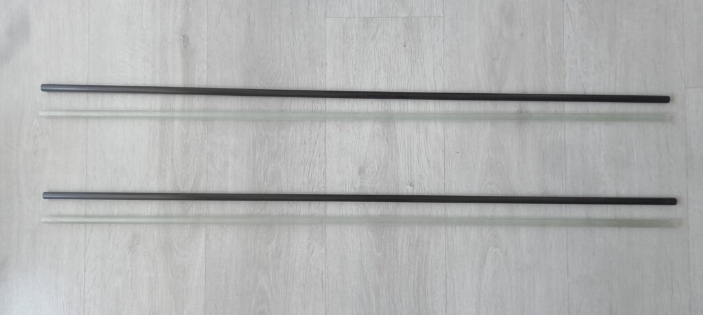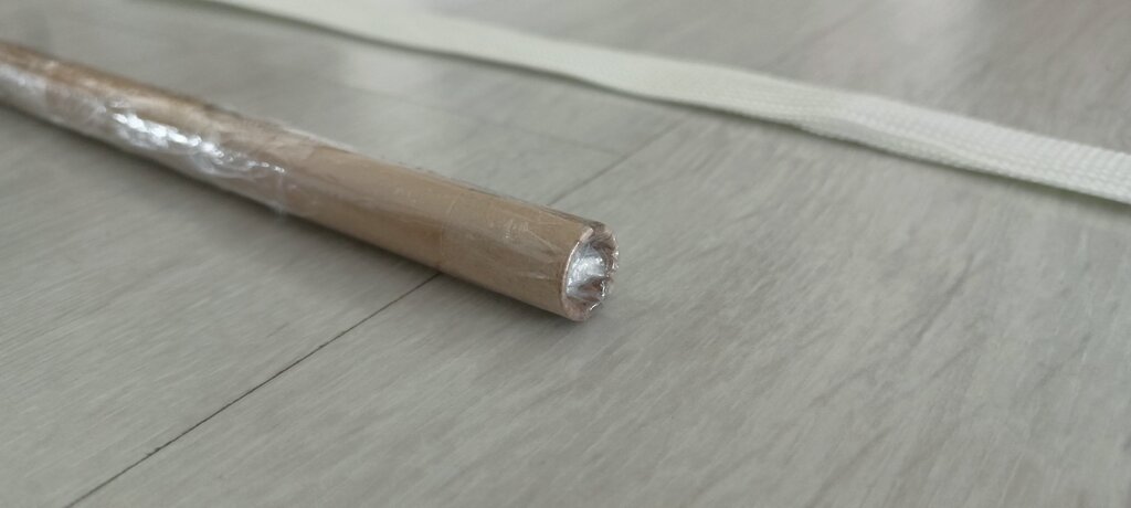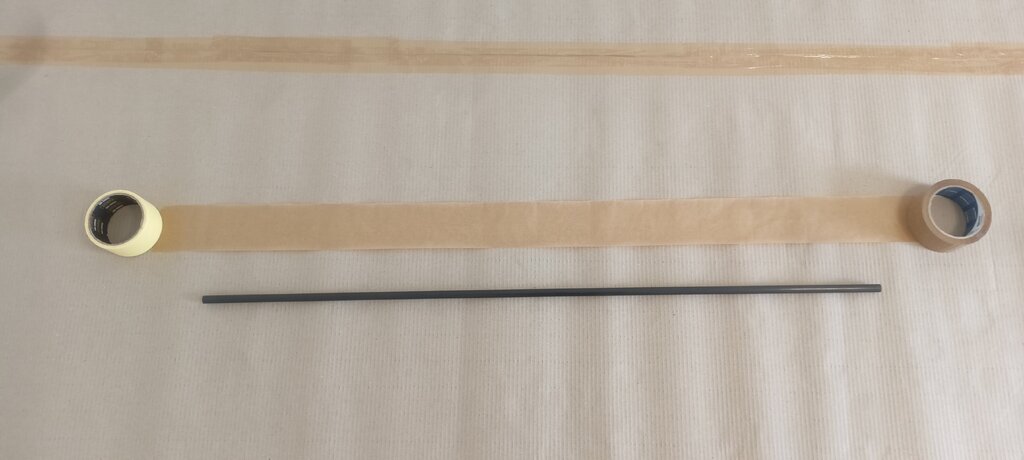 Czas zacząć budowę Lancastera. Zrobiłem kieszenie laminatowe na rurki 12 mm, wyszły perfekcyjnie. Rurkę ze środka udało się wyciągnąć w rękach (nic się nie skleiło), grubość ścianki kieszeni to 0.4mm, waga metrowej kieszeni to 24 g. Jest lekki luz ale taki jak powinien być. Pokażę jak jak je robię - może komuś się przyda. Zaczynam od odmierzania szerokości paska papieru do pieczenia tak żeby rurka była owinięta dokładnie dwa razy. Następnie rurkę smaruję bardzo cienko smarem (nie wiem dokładnie co to za smar ale jest biały) i rurkę układam na początku paska papieru: Smar ma dwie funkcje, oprócz bardzo łatwego wyciągania rurki później przykleja do siebie papier, dużo łatwiej jest zawinąć całą rurkę: Teraz zawijam papier do końca i zabezpieczam go taśmą pakową, taśma ma grubość 0.02mm więc praktycznie nie wpływa na późniejszy luz (grubość robi papier): Końcówki papieru zawijam do środka. Potem na tak przygotowaną rurkę daje jeszcze folię stretch (jeszcze cieńsza niż taśma), nie ma szans żeby żywica przykleiła się do folii a po wyjęciu zostawia bardzo gładka powierzchnię wewnątrz kieszeni: Na to naciągam rękaw szklany: Rękaw dajemy z naddatkiem tak żeby po obu stronach było można go zawiązać. Ja przy wiązaniu końcówek przeplatam sznurek z jednej i drugiej strony na którym z jednej strony wieszam rurkę pionowo a z drugiej strony zawieszam 1.3kg ciężarek. Po nasączeniu zywicą, odcięciu końcówek i usunięciu papieru i folii powstaje coś takiego: Ja używam żywicy L285 z utwardzaczem H286 (czas 2h). Mam już też koła do Lancastera, 100mm: Podwozie jednak będzie, będą mechanizmy 5 kg, mechanizm 5kg waży 26 g więcej od 3 kg. Wolę dodać tą wagę i mieć solidne podwozie. Jeden zestaw podwozia (mechanizm + koło + części aluminiowe) ważyć będzie 150g. Czyli całe podwozie 300g. -
