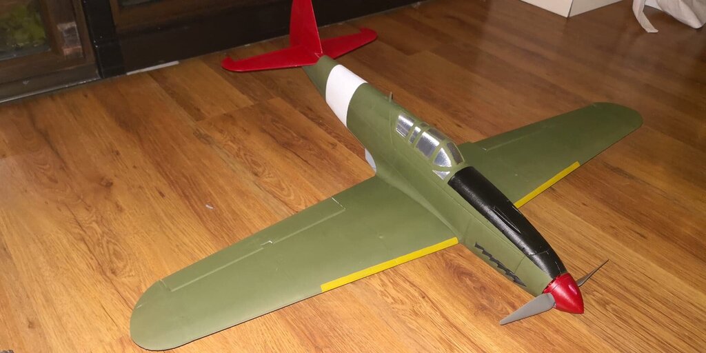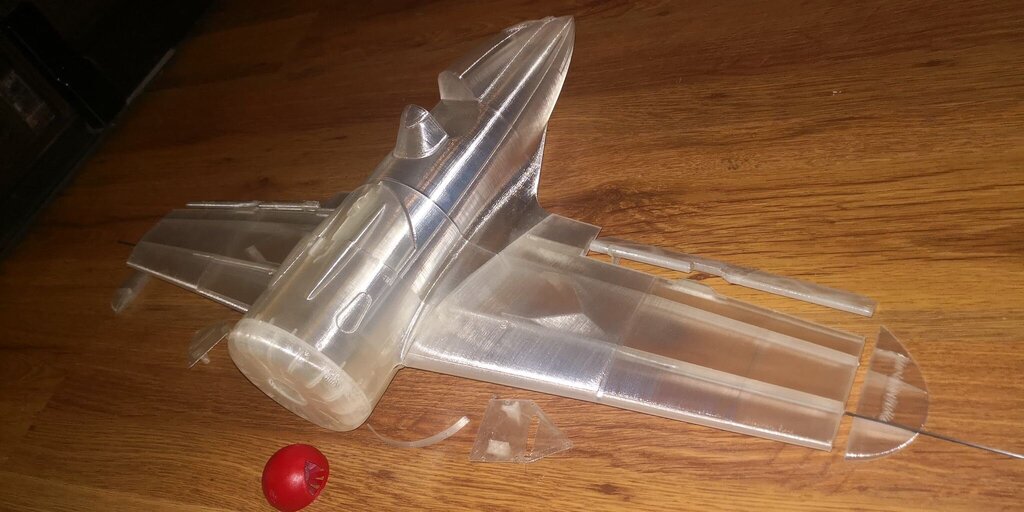 2. Jako, że Przemek rozhulał się z projektami na drukarkę zostałem testerem wydruku prototypu. Czynię to z wielką przyjemnością, bo Rata to mój ulubiony myśliwiec WWII. Na dziś mam gotowe wszystkie wydruki. Model będzie trochę hybrydą, bo zdecydowaliśmy, ze stateczniki będą z balsy. Na dzień dzisiejszy złożony na sucho wygląda tak To co na zdjęciu waży 315g