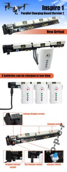 Ładowarka DJI Inspire 1!!! W 90 minut 3 baterie!!! Zestaw zawiera: - 1 * Listwa dystrybucyjna do ładowania 3 baterii na raz DJI Inspire 1 - 1 * Zasilacz stabilizowany 26V o wysokiej wydajności prądowej Opis produktu: - Płyta dystrybucyjna do ładowania 3 baterii DJI Inspire 1 z wyświetlaczem napięcia i bezpiecznikiem - Skraca czas ładowania dużej ilości baterii w tym samym czasie - 3 załadowane baterie zamiast 1 - Eliminuje problem przekładania baterii podczas ładowania pojedynczą ładowarką - Bezpiecznik i rezystory zabezpieczają przed zniszczeniem baterii podczas przepięć na układzie Więcej informacji można znaleźć na stronie www.funandfly.pl lub na facebook.pl
