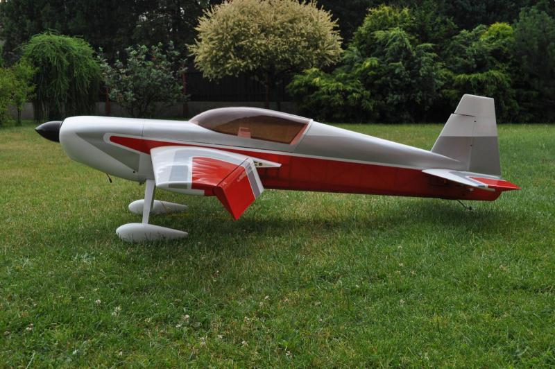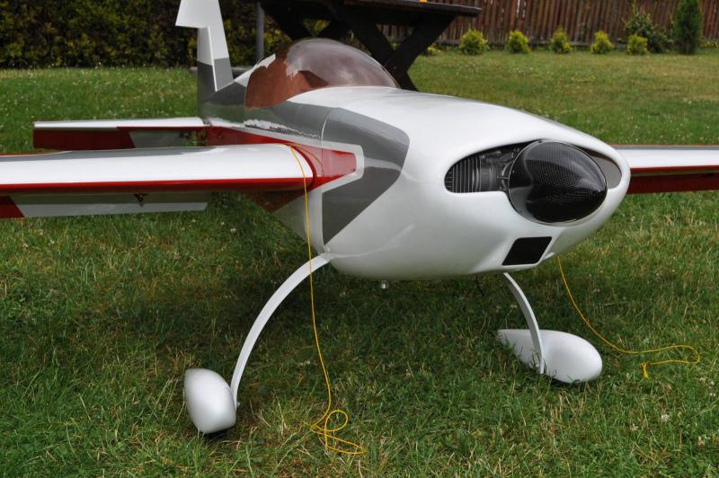 W ogóle nie ma co polemizować, absolutnie słuszna uwaga Jarek. Czuje się zasłużenie zrugany. Dopiero na spokojnie oglądając film dotarło do mnie, że wytracenie prędkości było stanowczo za duże. Ale nic, wyszło jak wyszło i pozostaje się pilnować, żeby w przyszłości w ten sposób nie lądować. Trudno po dwóch lotach jakoś wyczerpująco odpowiedzieć na takie pytanie, kiedy jedyną dotychczasową regulacją było wyważenie, ustawienie expo i wychyleń. Co zauważyłem - nowa Extra jest zdecydowanie zwrotniejsza w powietrzu. Ale to tak zde-cy-do-wa-nie! Figury pionowe jeszcze nie za bardzo wychodzą - zupełnie nie potrafię wyczuć momentu, kiedy trzeba model 'wytrącić' z pionowego korkociągu, żeby zaczął się jakoś widowiskowo obracać. Ale zauważyłem też jedną istotną wadę - w rzucie pionowym mocowanie podwozia wypada dość blisko środka ciężkości. 'Na oko' to jakieś 11cm. A to sprawia, że model ma potężną tendencję do kapotażu przy lądowaniu - widać do również na filmie Rafała z drugiego lotu. Co prawda model nie poleciał na maskę, ale drasnął śmigłem murawę. Trochę mam teraz problem, co z tym zrobić. Tyłu już bardziej doważyć nie mogę. Chyba pozostanie wyrobienie w sobie nawyku (wcześniej nie miałem potrzeby tak robić) zaciągania steru wysokości zaraz po tym, jak model dotknie ziemi. Pytanie - na ile to będzie skuteczne...