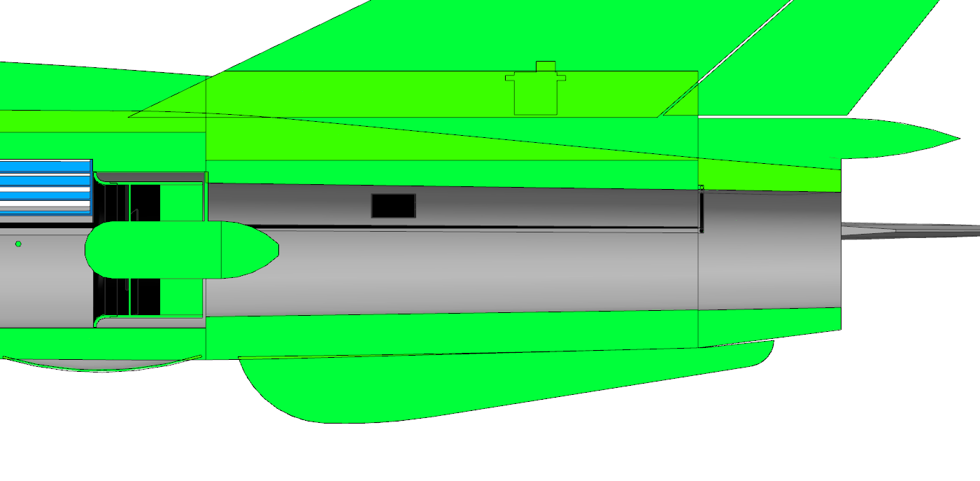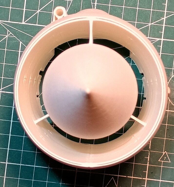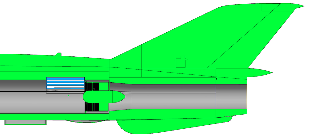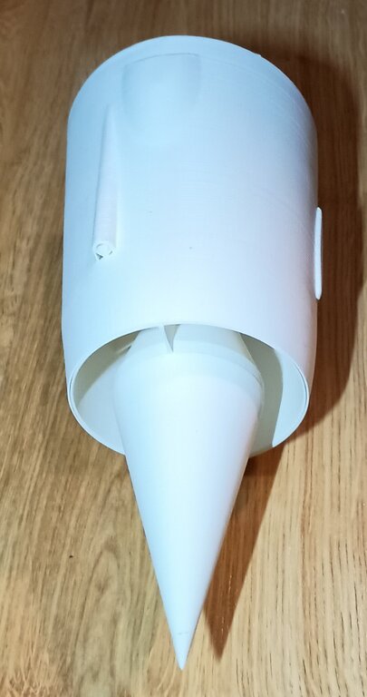 By tak jednak pobudzić Was do działania moje kolejne pytanie Wiadomo, że MIG21 ma stożek wlotowy, który cofając się powiększa powierzchnię pierścienia wlotowego. Oczywiście wiadomo, że model będzie musiał mieć "fałszywe", dodatkowe wloty powietrza na kadłubie - ale pomińmy to na tę chwilę. Nie zamierzam pozbyć się tego stożka lub zrobić go mikroskopijnego bo to po prostu część charakterystyczna MIG'a. Wiadomo, że cudów nie uzyskam, ale przyszło mi do głowy takie rozwiązanie.... Gdyby zrobić stożek w postaci cofającego się "spławika" taj jak w oryginale... byłby on w modelu na bardzo delikatnej sprężynie i "cofał się" samoczynnie od naporu powietrza z prędkości modelu i ciśnienia dynamicznego od EDF'a... Na ziemi byłby w pozycji przedniej a z dodawaniem gazu i prędkością cofałby się samoczynnie.... Pozycja wysunięta - pierścień 2570mm^2: Pozycja wsunięta- pierścień 4400mm^2: No i pytanie... WARTO? Że niby ten, tylko na długim mocowaniu tak by był sztywno przymocowany do kadłuba?