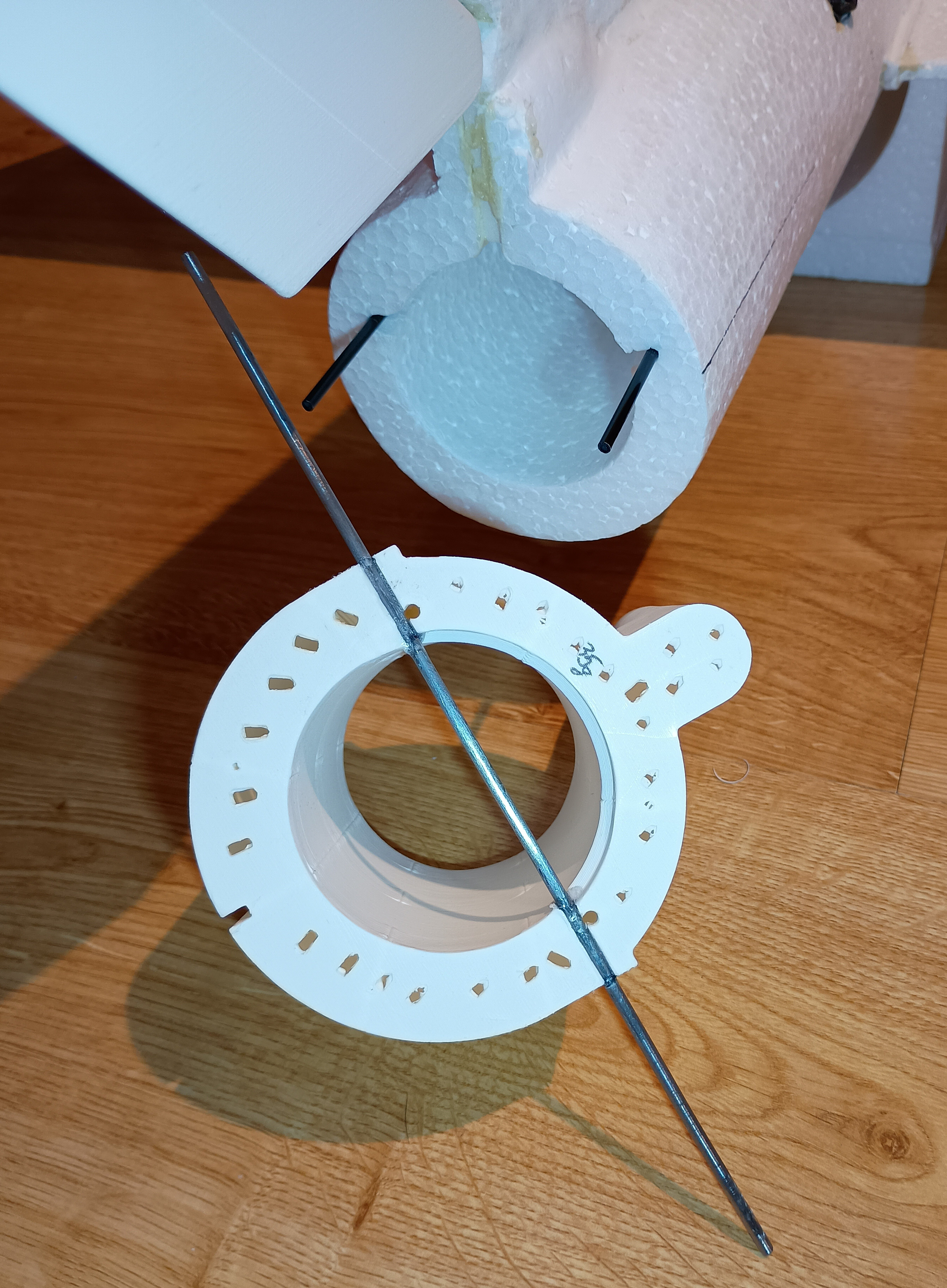 Wiesz, to drut ze szprychy rowerowej, sztywny... ale może faktycznie coś za cienki. 👍 Jakoś pewniej czuję się z drutem stalowym niż rurką. Rurkę musiałbym puścić przez kanał turbiny. Mam jeszcze drut sprężynowy fi2, zrobię na nim próby, no i jeszcze fi3 sprężynowy - ten to utrzyma wszystko.