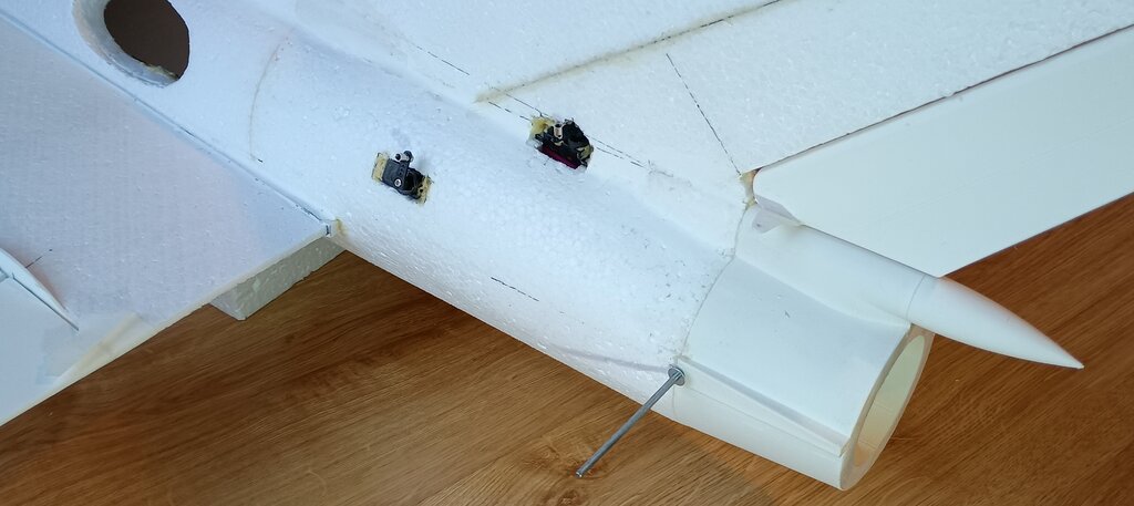 U mnie nie wadzi bo mam dluższy popychacz, trochę skierowany do osi więc nie wadzi o plat steru. Nie jest to takie eleganckie rozwiązanie jak u Ciebie, dłuższe popychacze, ale już tak zostawię. Trochę już za poźno, a wcześniej nie wpadłem na ten pomysł, ale będę pamiętał.